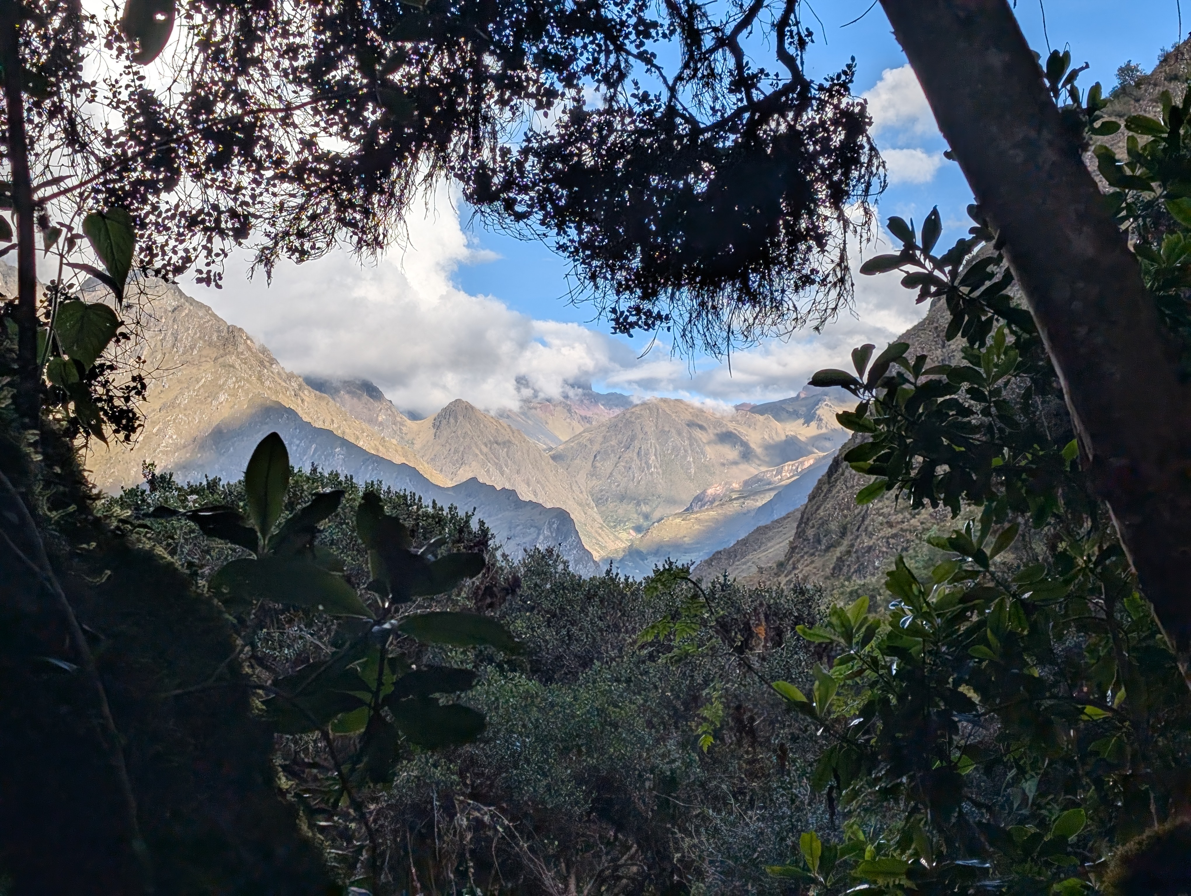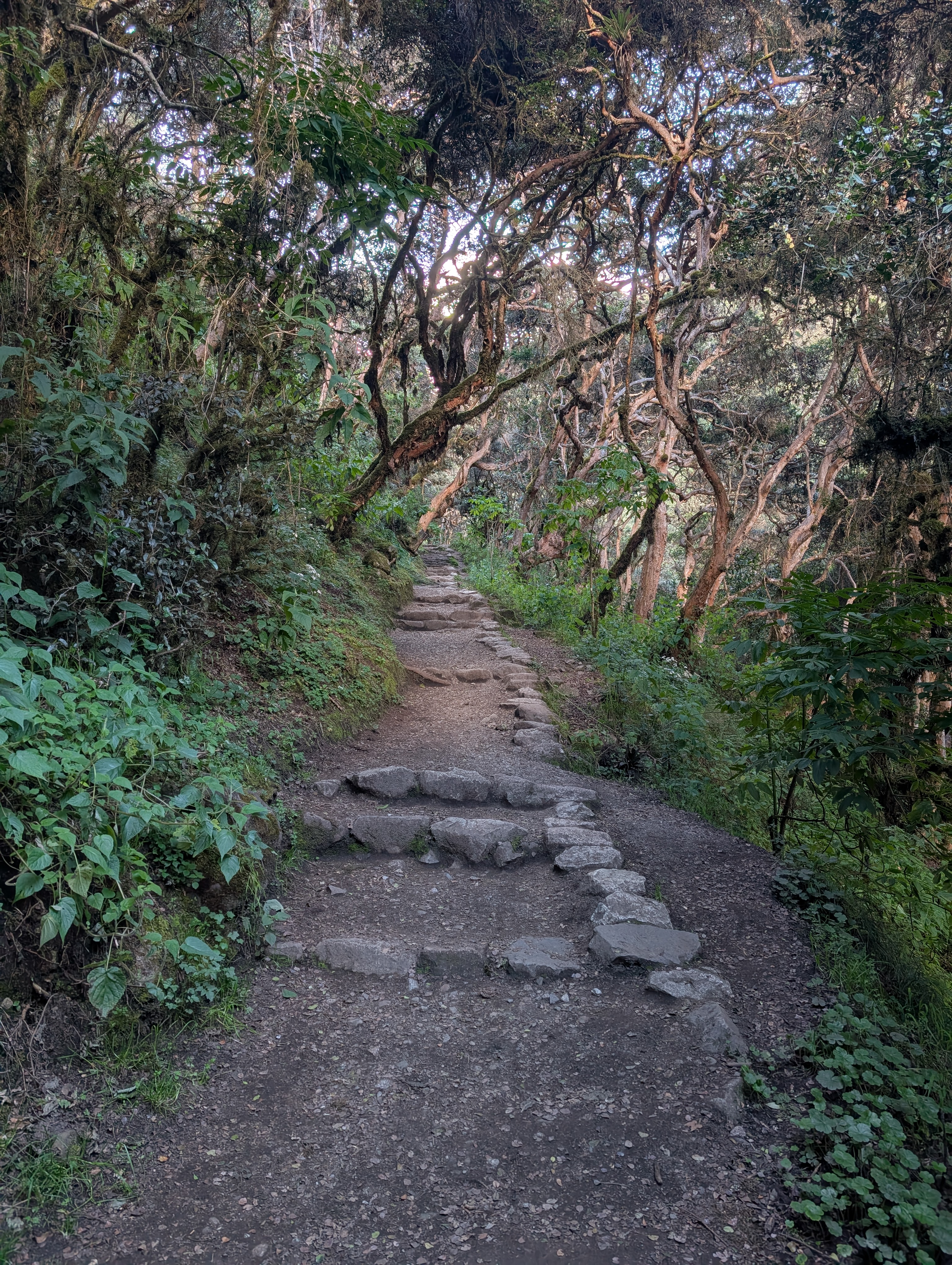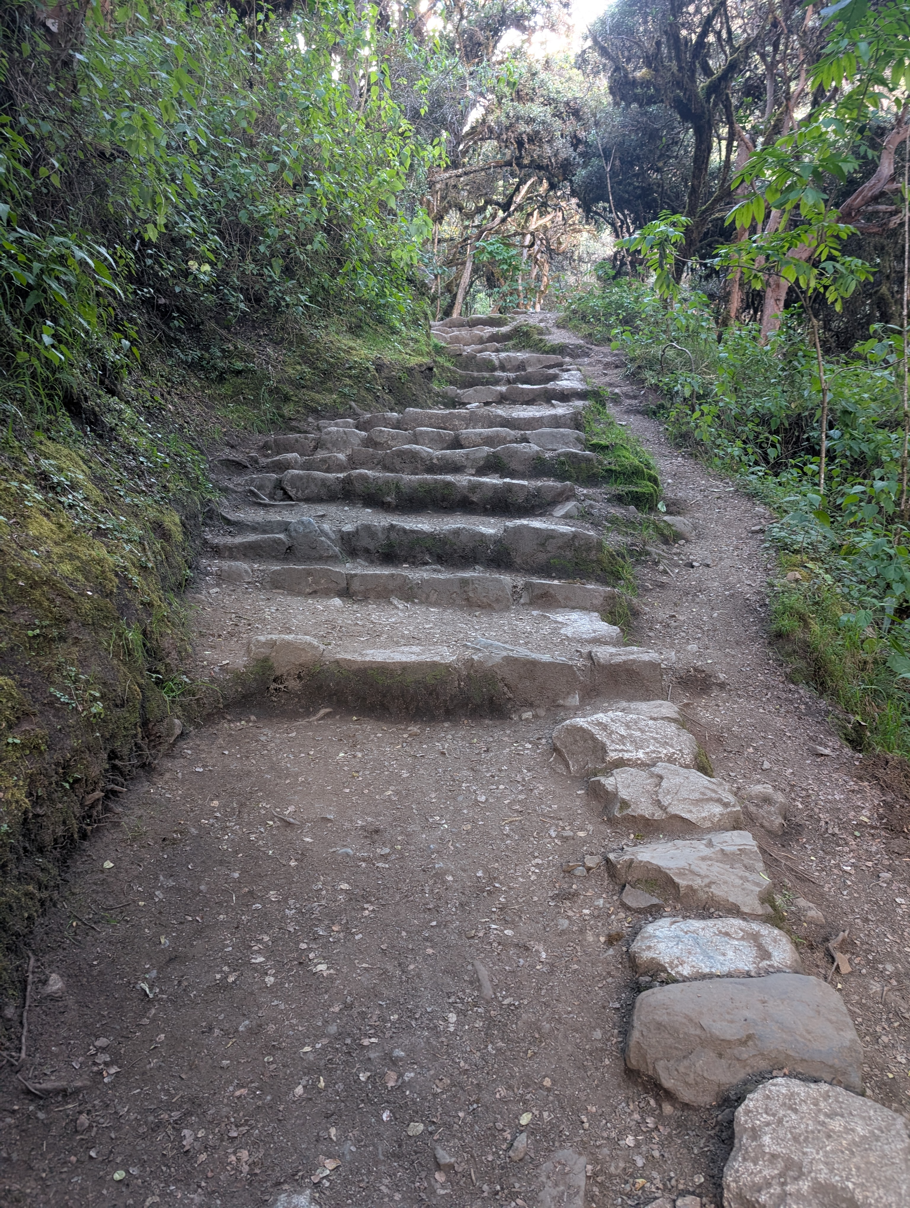 Approaching and passing 12,000 ft., the Unca Forest continues to shade the Inca Trail.