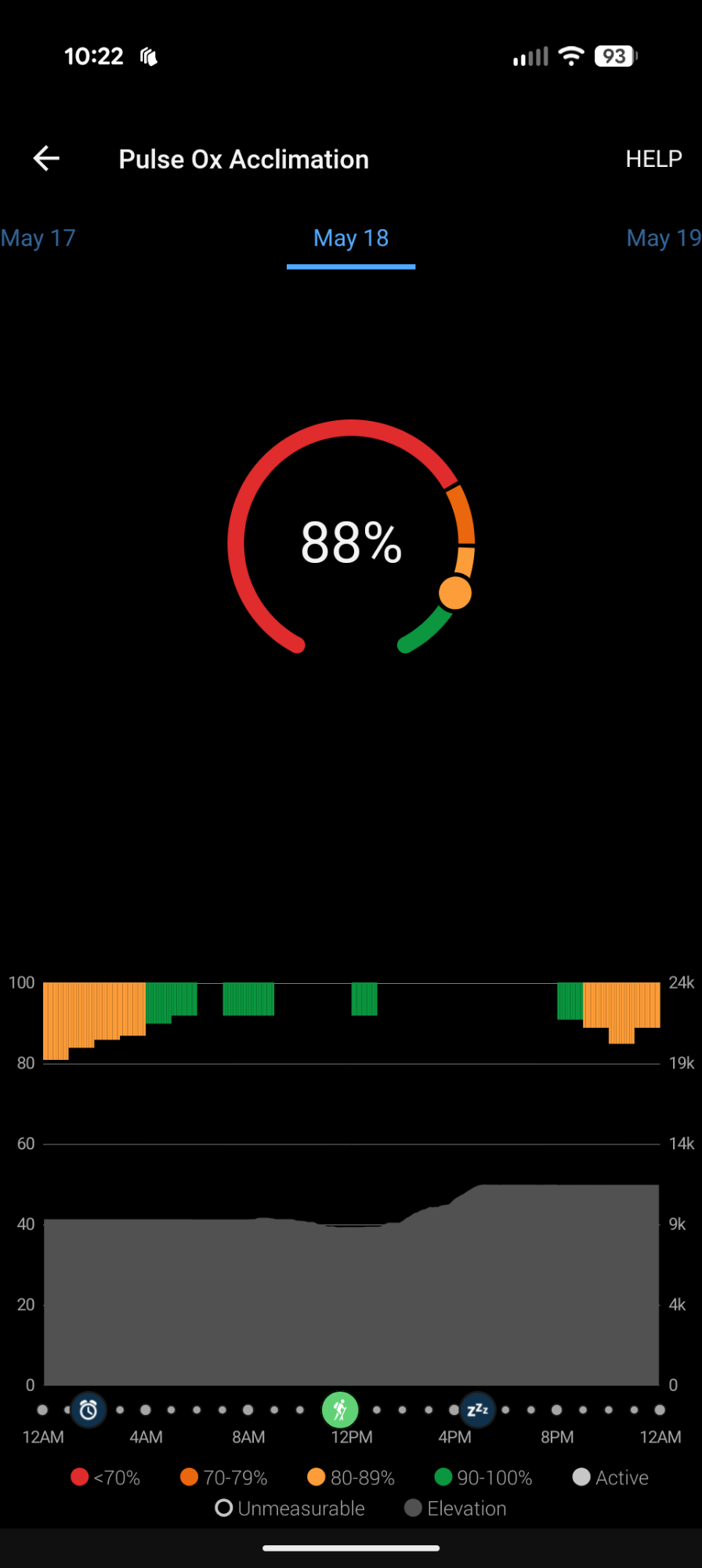 37% acclimated to 12,415′ and fully acclimated to 6233′