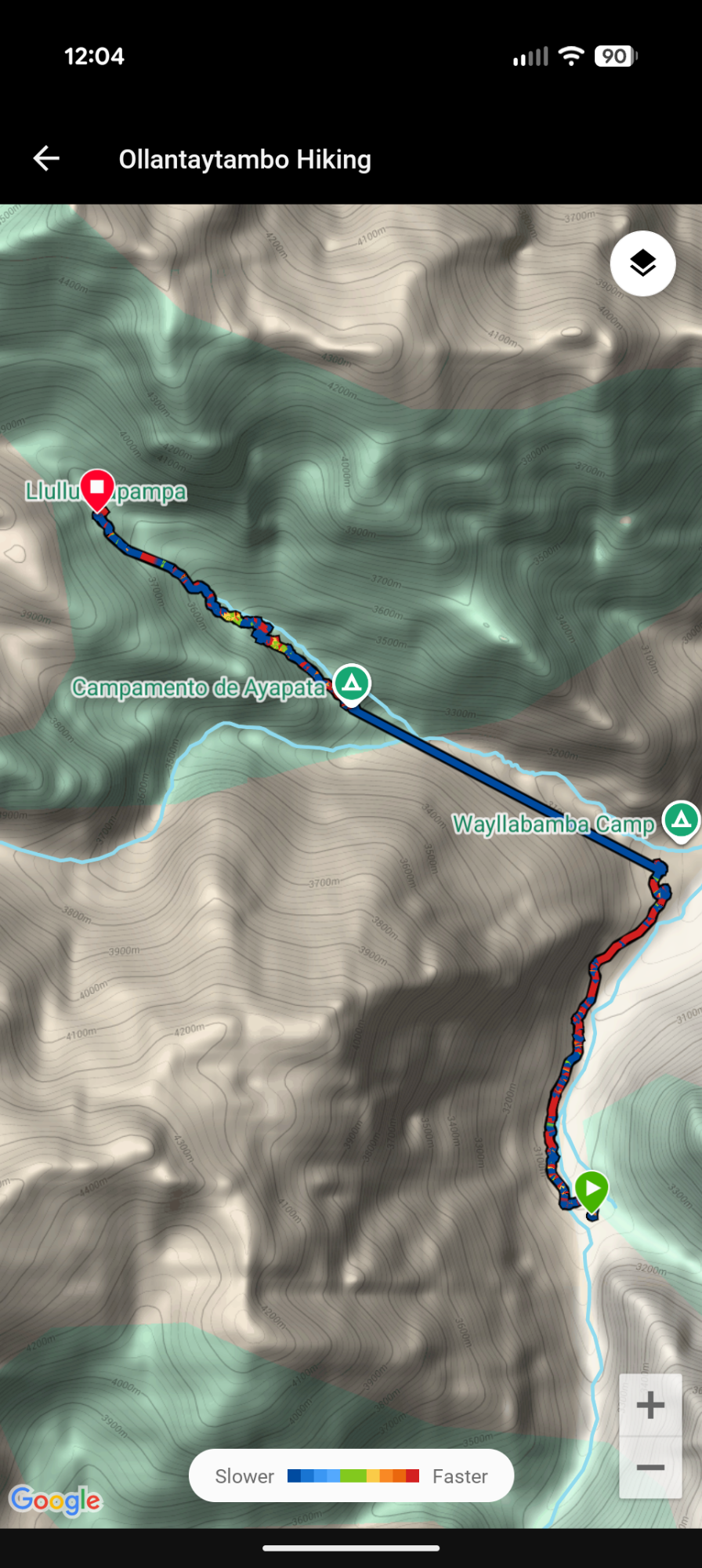 We are going to follow the Inca Trail up and across the front of the mountain in the middle of the above picture. Then, we will continue climbing up Llullucha Canyon until we cross Abra Warmiwañusca or Dead Woman’s Pass tomorrow morning.