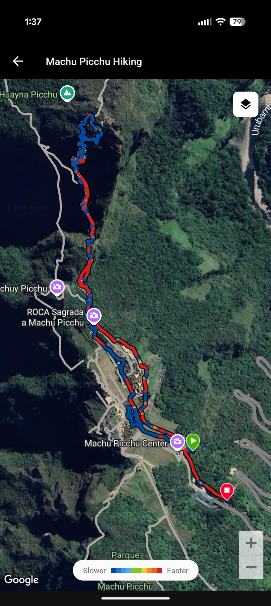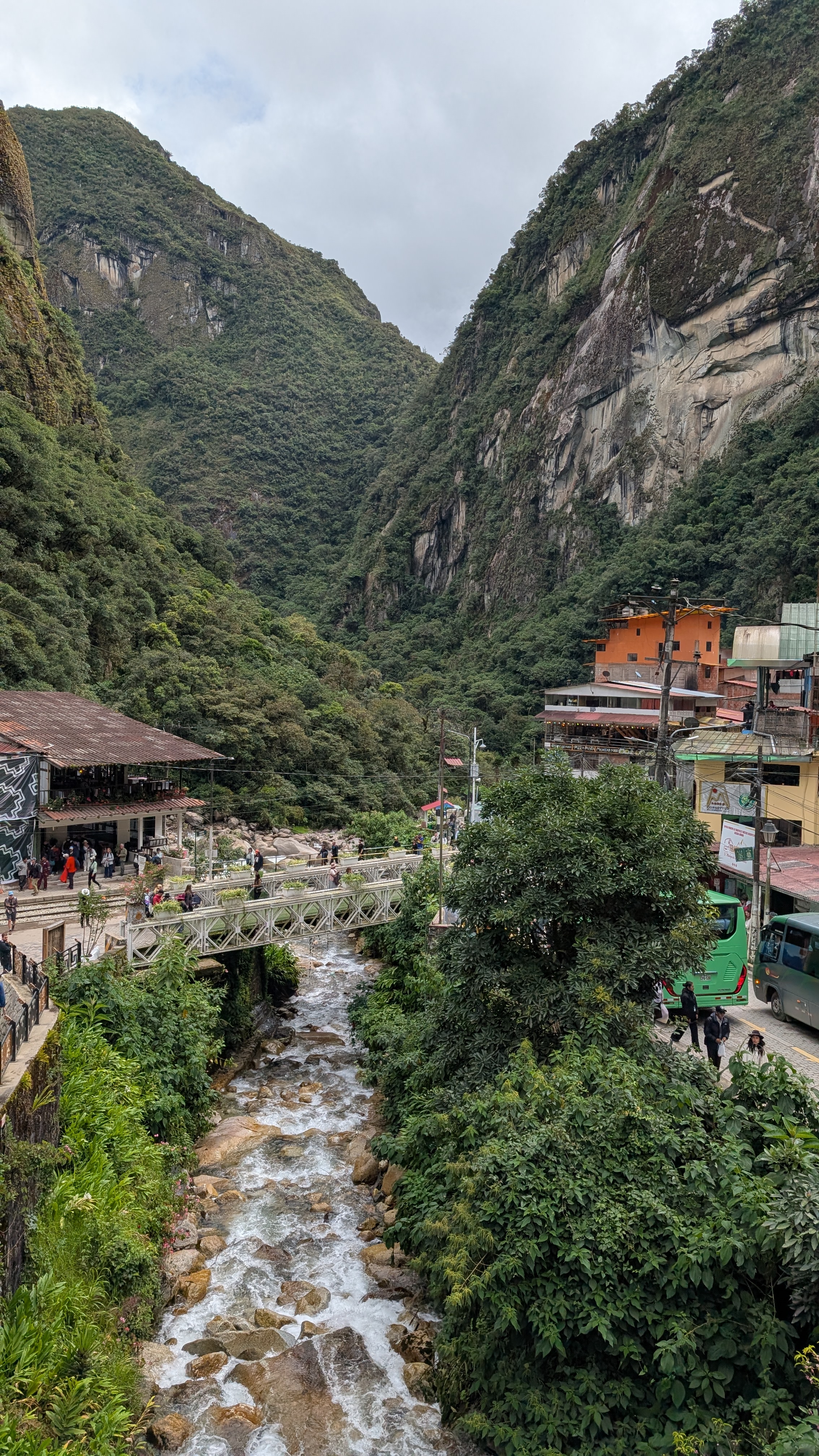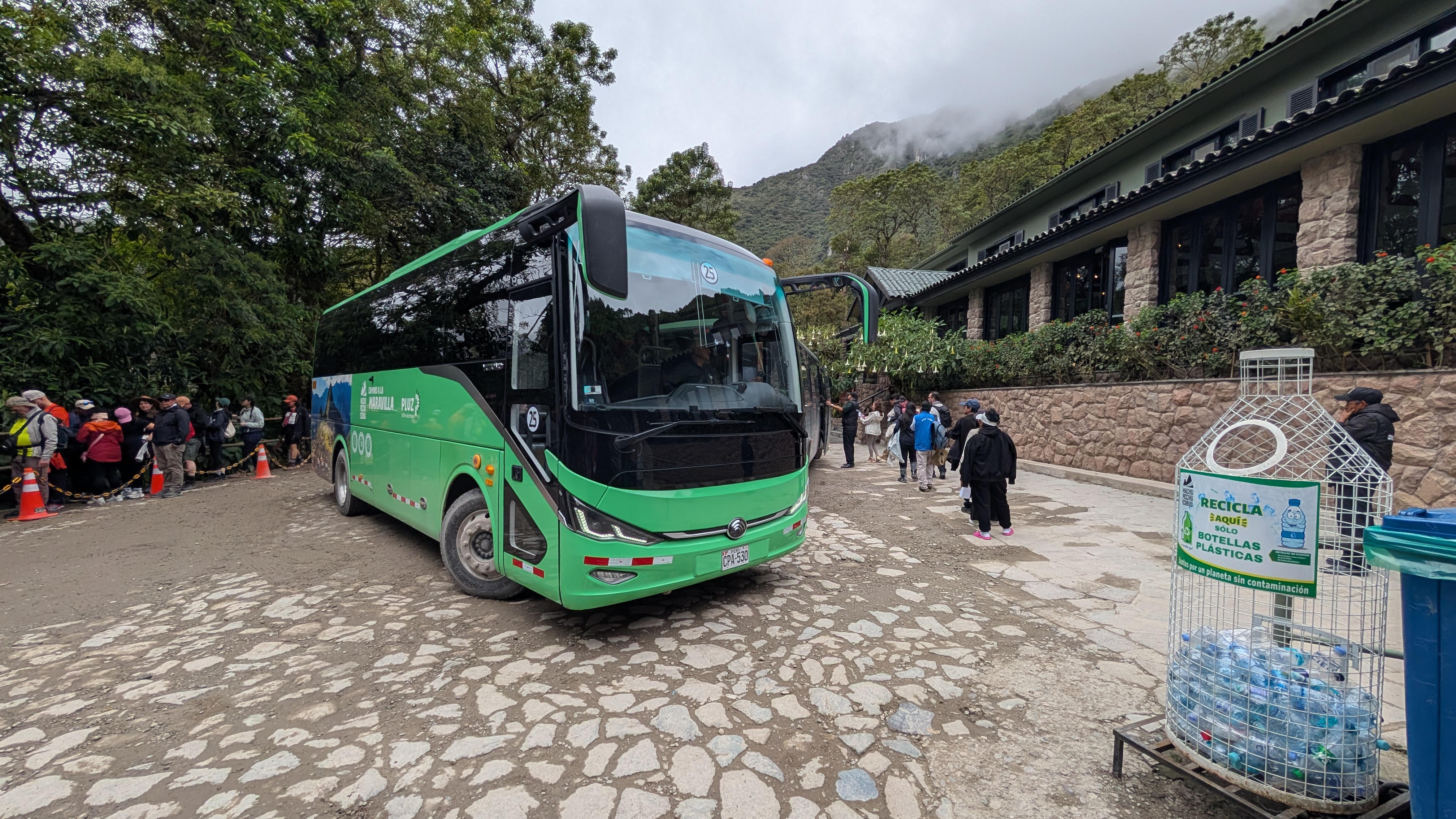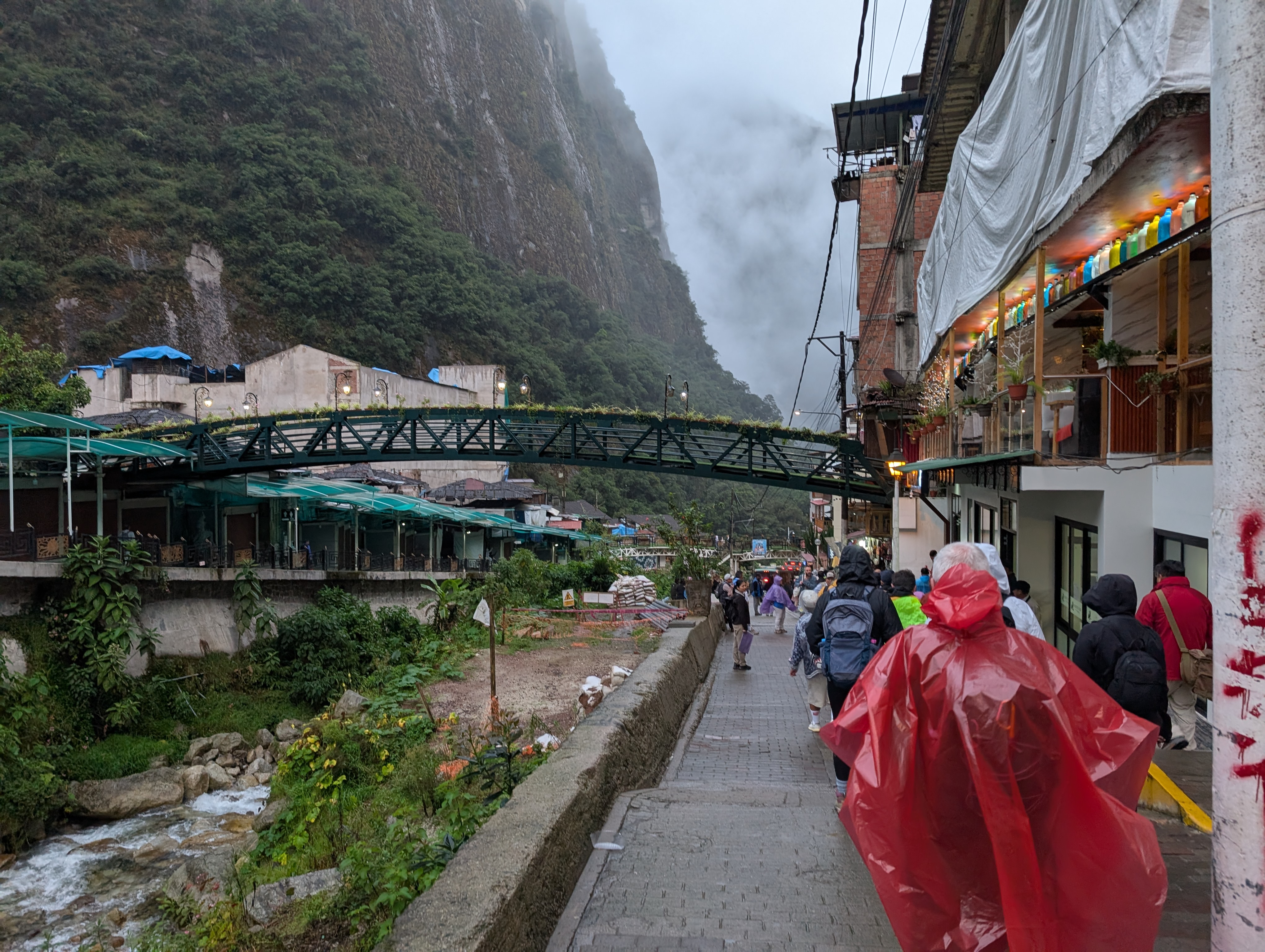 4:30 am wake-up, 5:15 am breakfast and 6 am lobby. Elizabeth, Ronnie (Elizabeth’s husband), Ian, Jane and myself all meet in the Hotel Tara Machupicchu lobby ready to check out of the hotel and store our luggage. We walk towards the center of Aguas Calientes as the dim sky starts to spit on us. This strikes fear into many who immediately start to buy thin but brightly colored ponchos from the vendors along the bus queue. Elizabeth explains that ever since Covid, the timing of the bus system and Machupicchu tickets has gotten much more organized. Now, there are set times to catch the bus and enter Machupicchu.