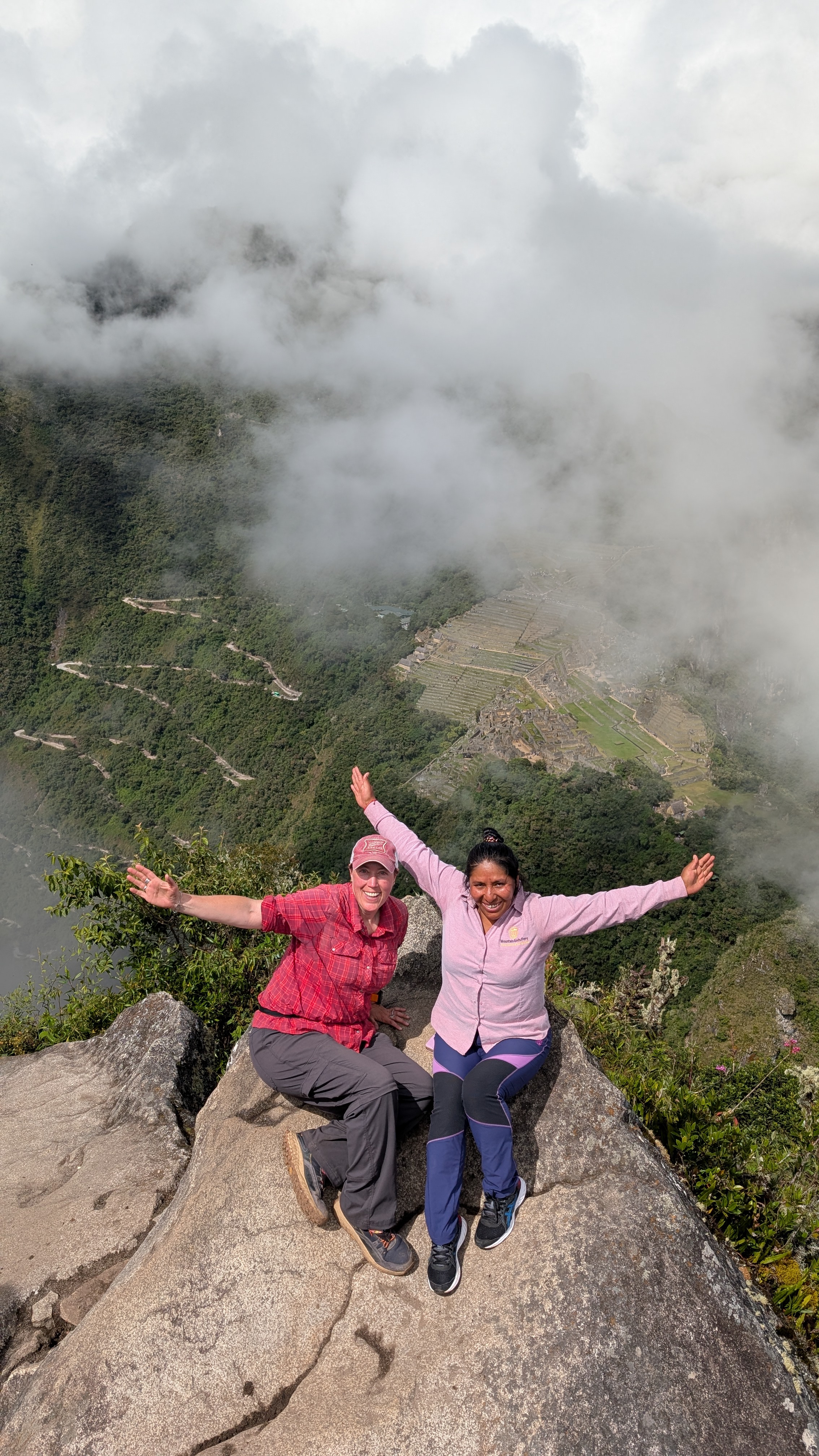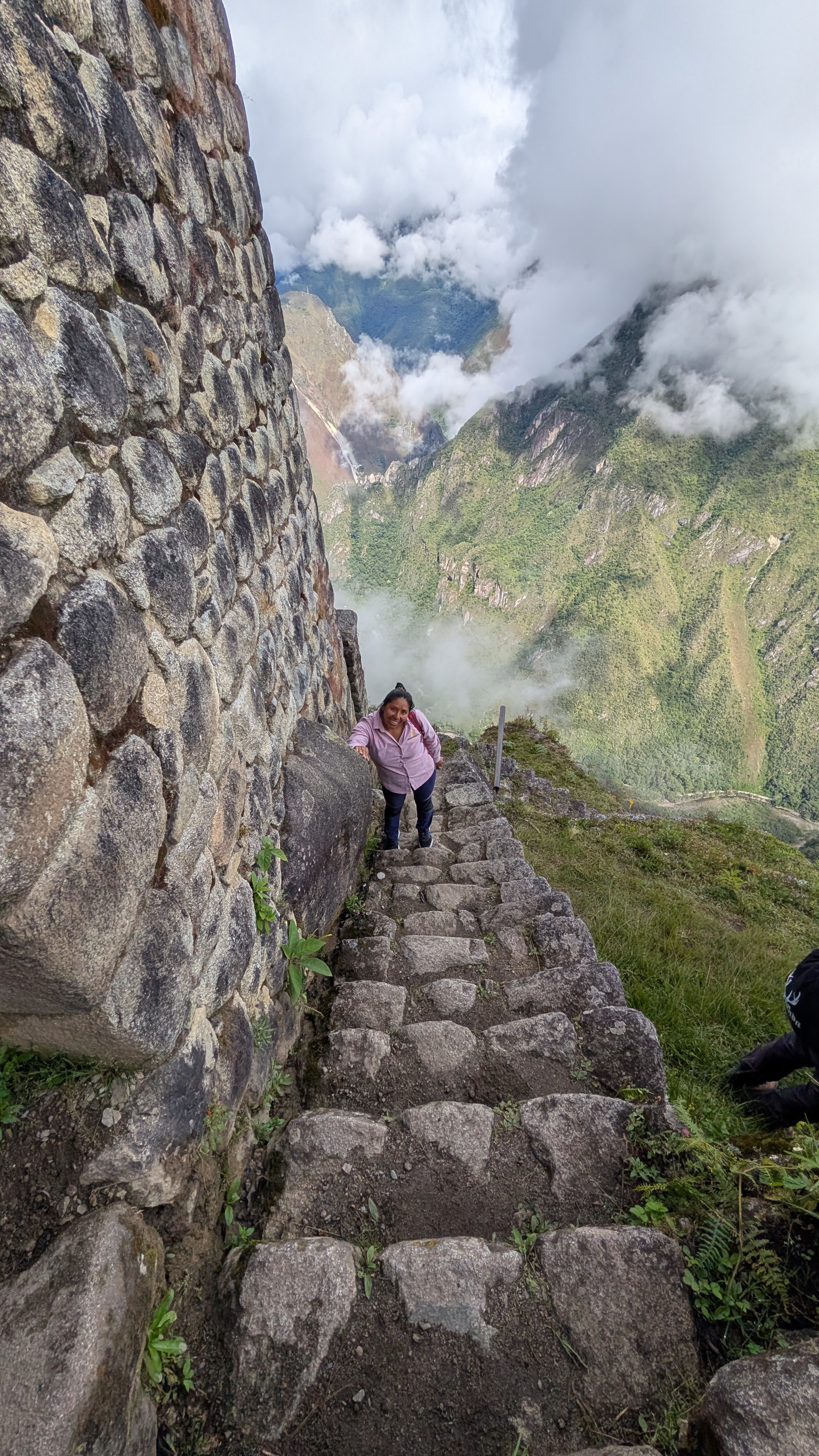 And then it’s nothing but stairs and over a 1000 ft. of climbing. Elizabeth tells me that her dad used to work at Machupicchu and she would come with him. She climbed this as a child before there were helpful cables.