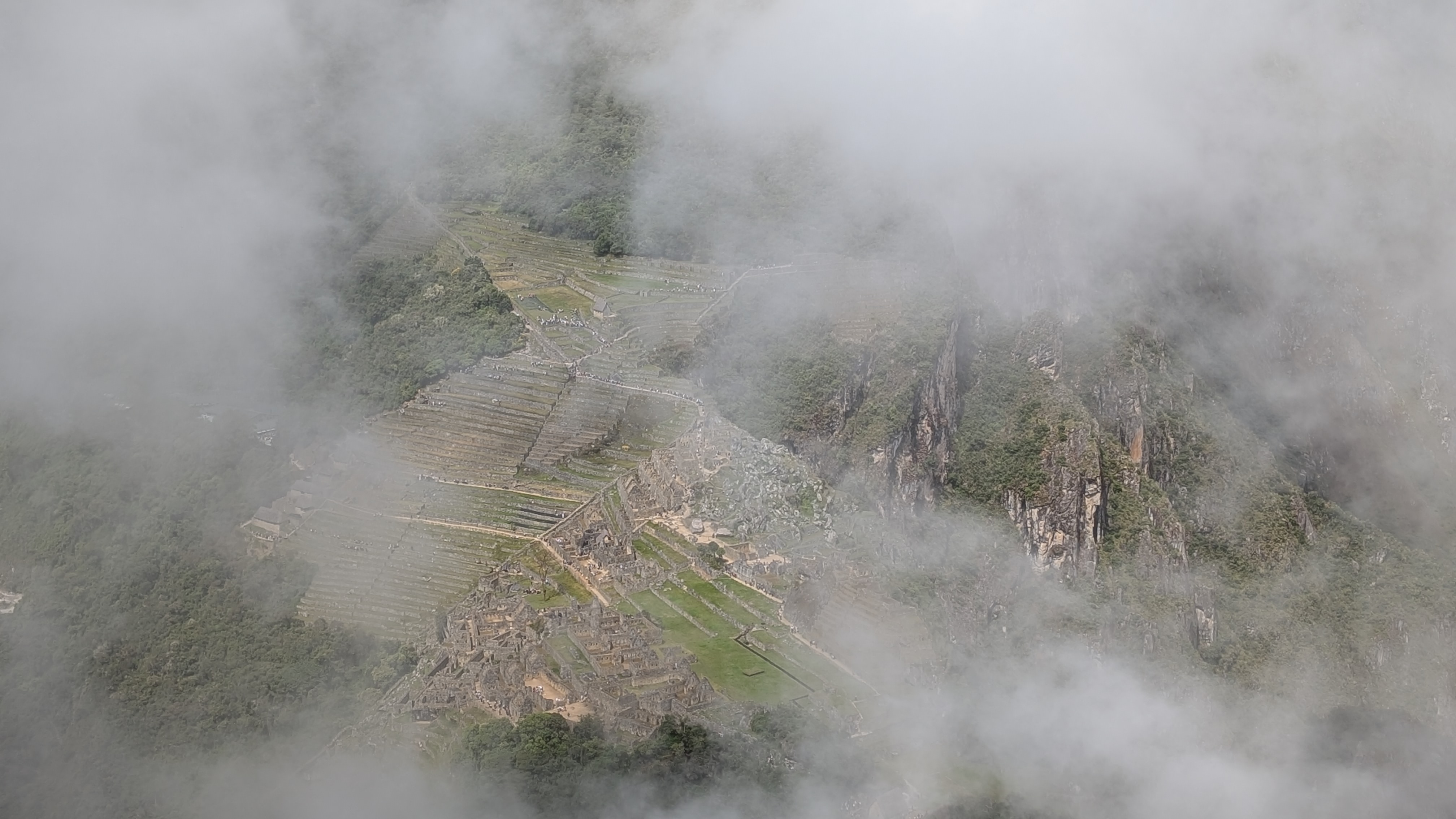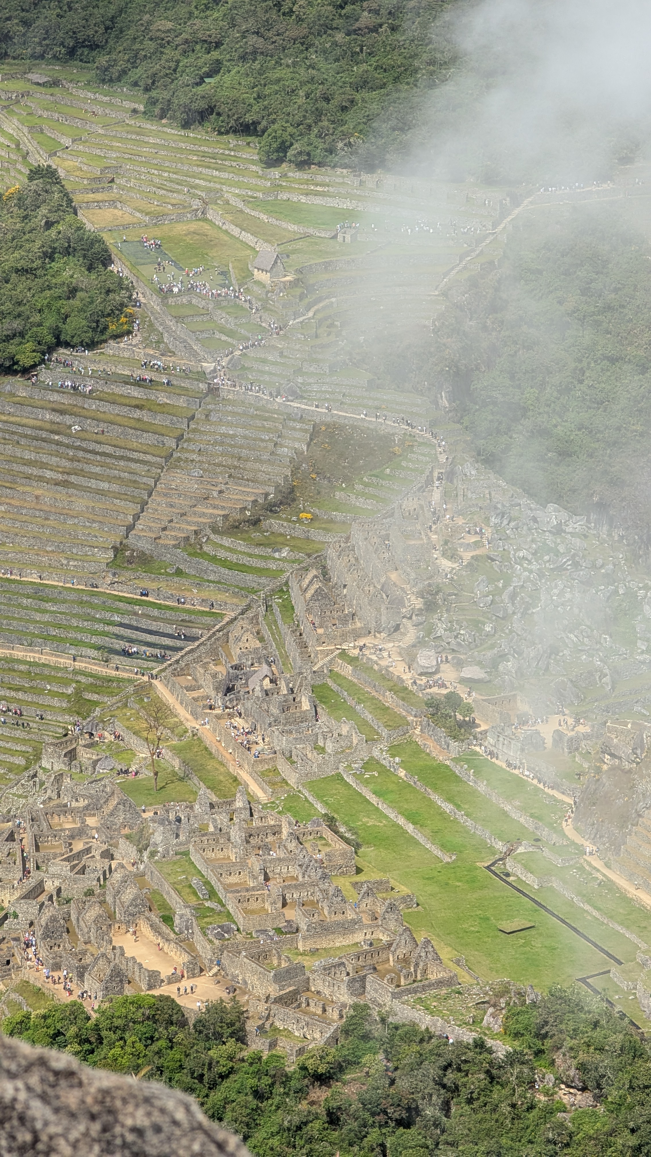 Circuit 3 or the “Royalty Route” includes the lower sacred parts of the citadel, royal residences and agricultural terraces. Elizabeth tells me about the history as the clouds move all around us. There are moments with a view before we are engulfed again.