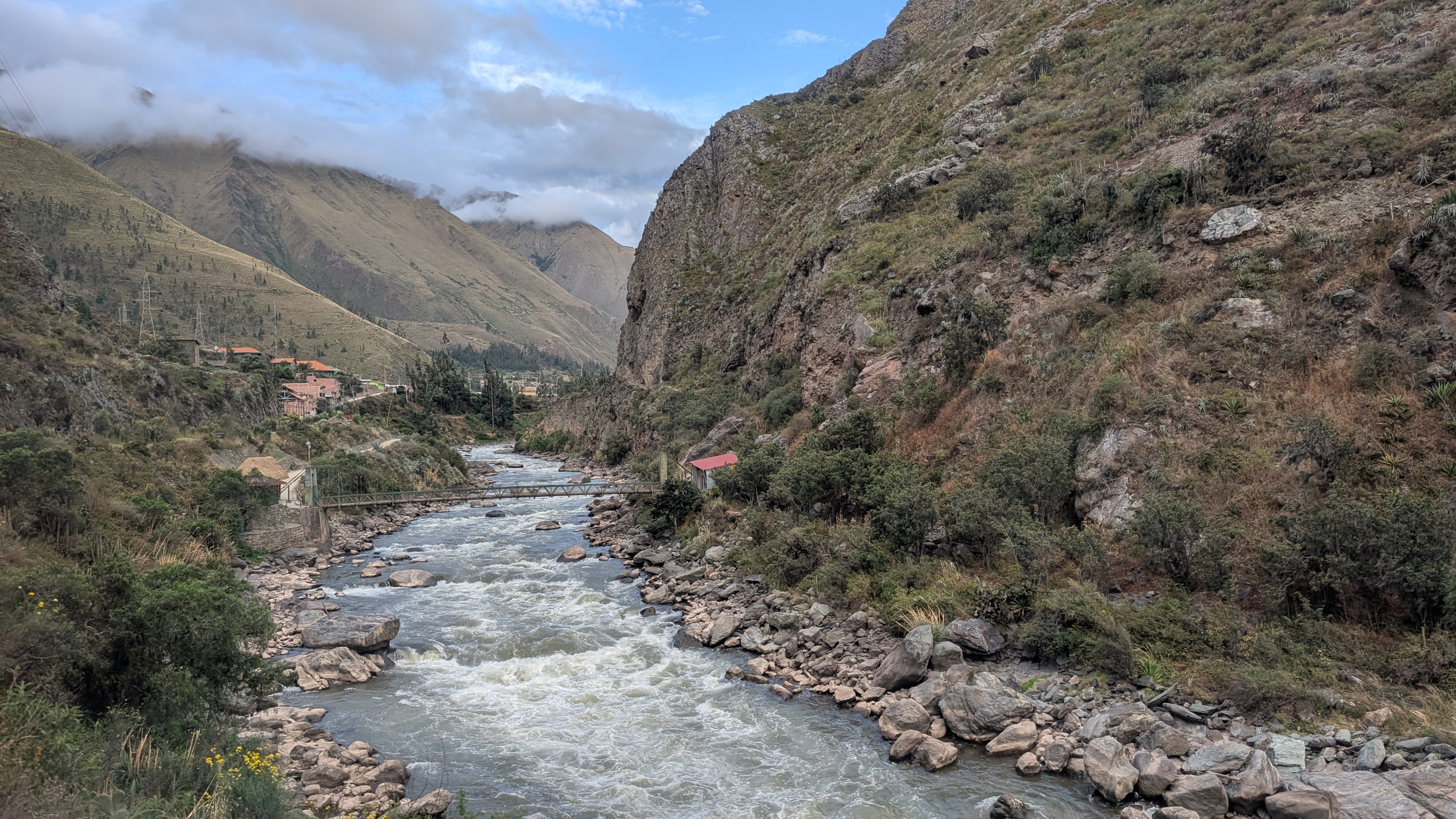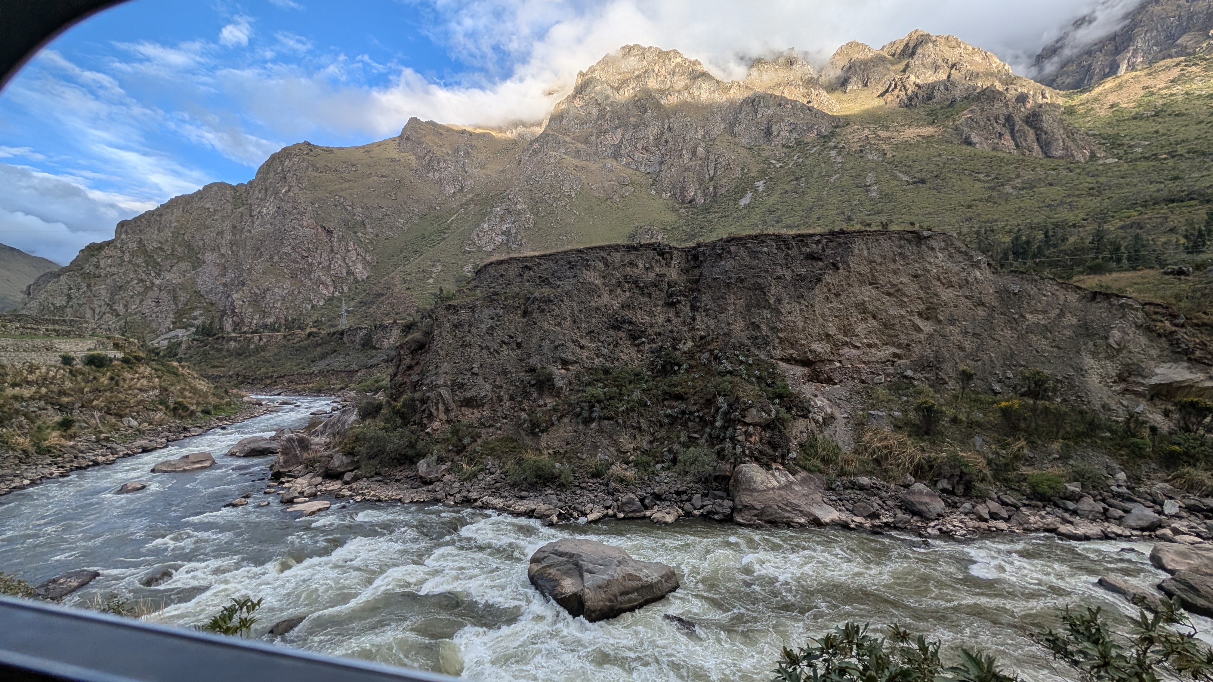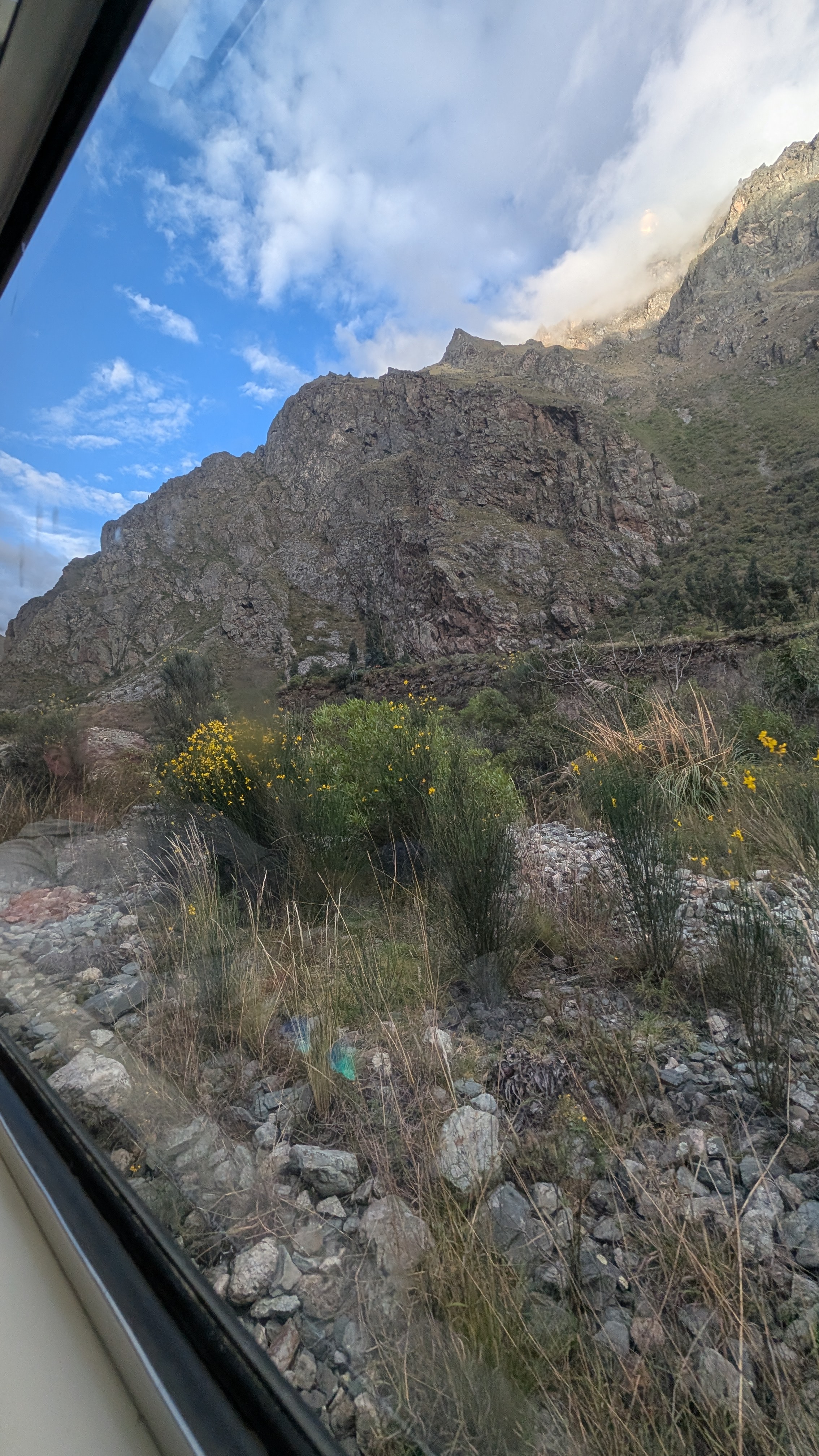 We sit in the waiting area for a little while before it’s time to start loading about 2:30 pm. It turns out we all are assigned different seats. My seat is with a group of seven other Americans. They’re a group of friends that get together for a hike every year. So, we talk trails a bit while as we coast past the Urubamba River. They perk up with excitement when we pass a bridge over the Urubamba and say that’s where they started the Inca Trail.