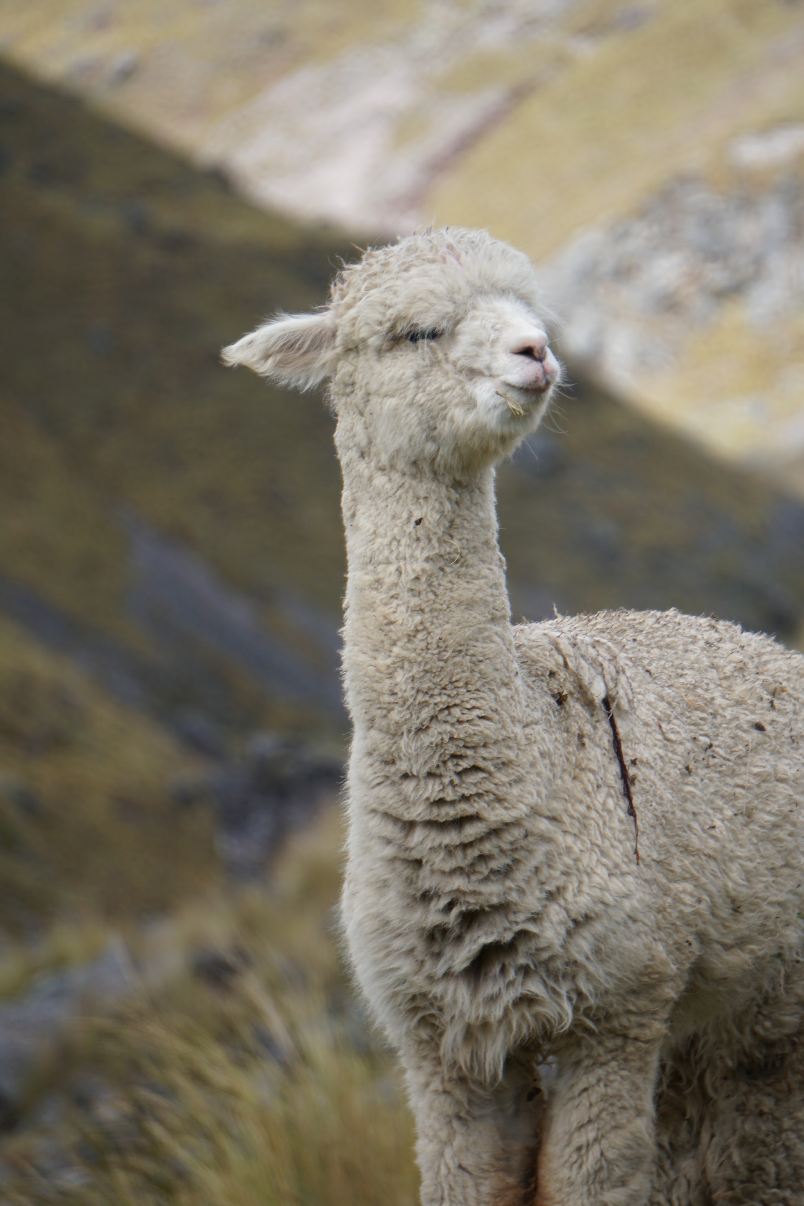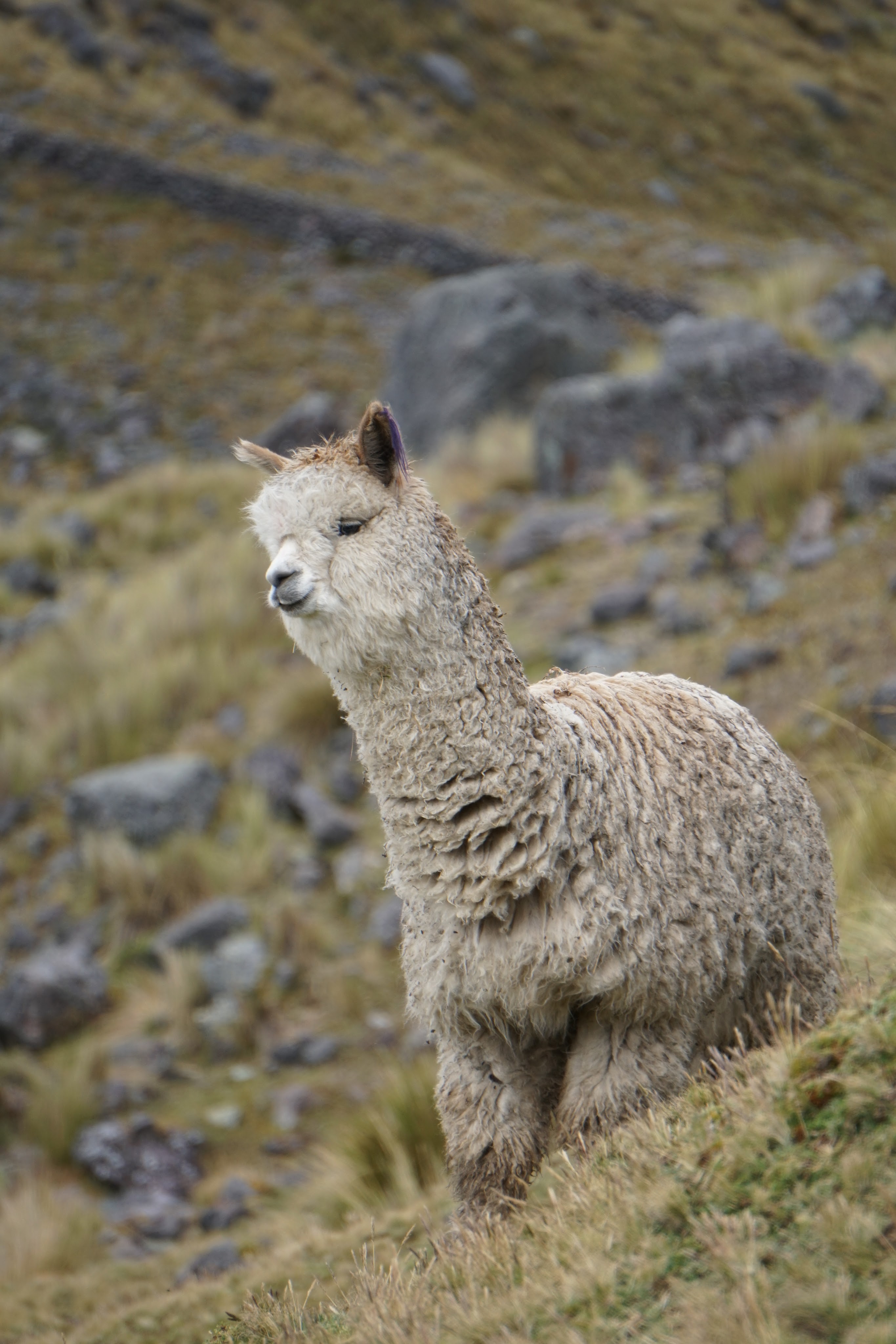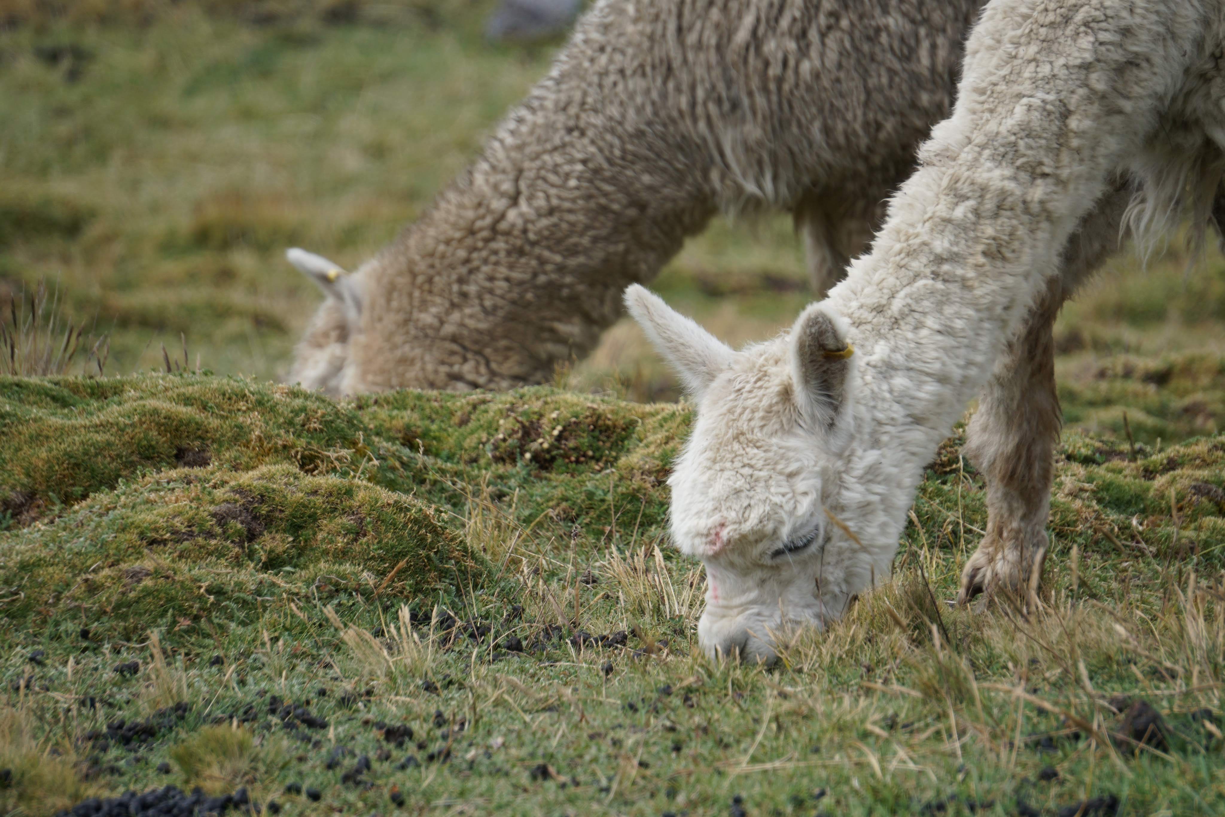 As we climb higher, we meet a herd of alpaca. They are busy living their best lives and grazing along the hillside.
