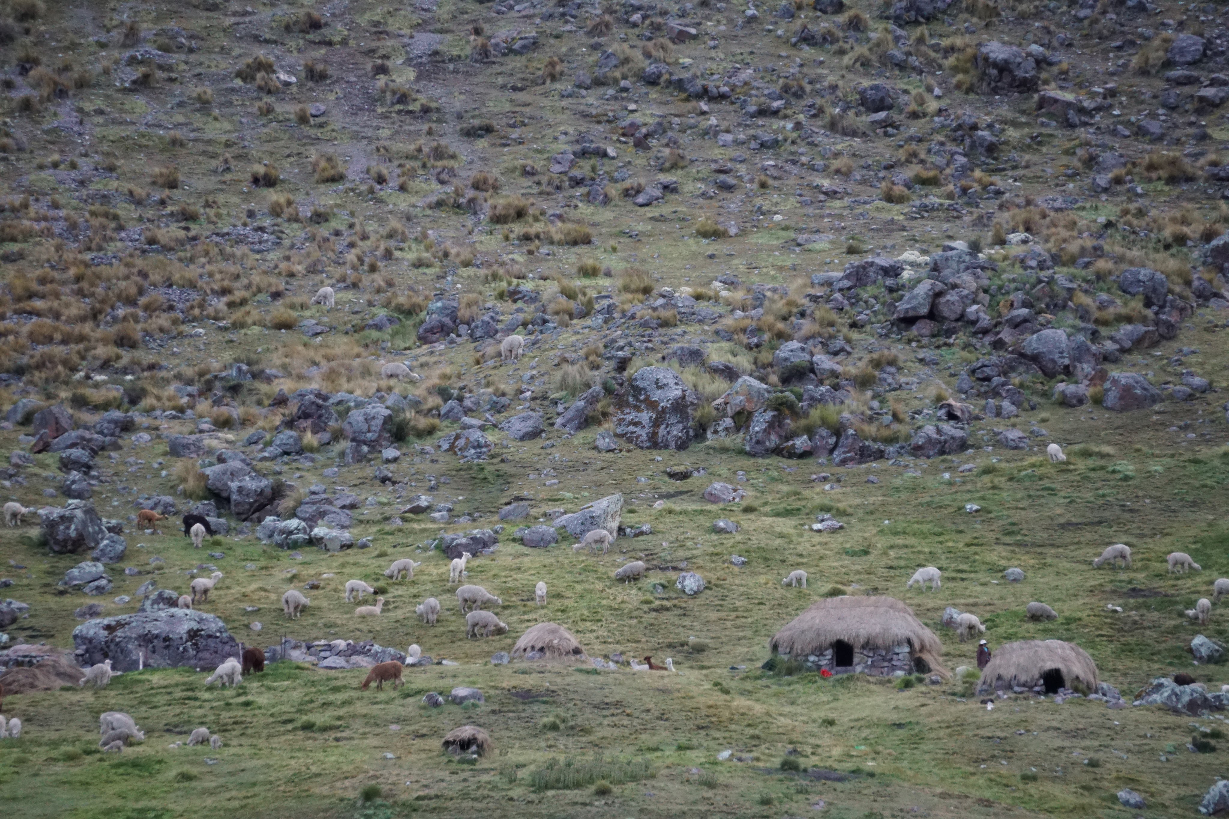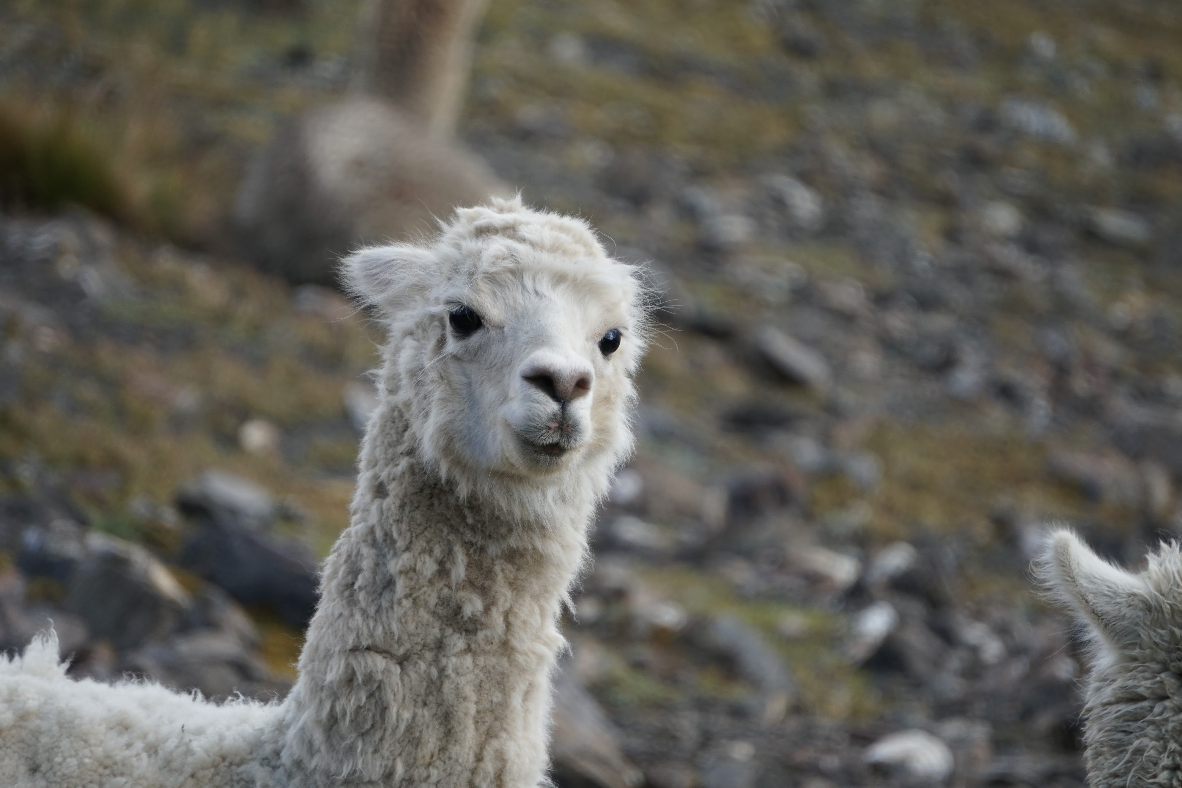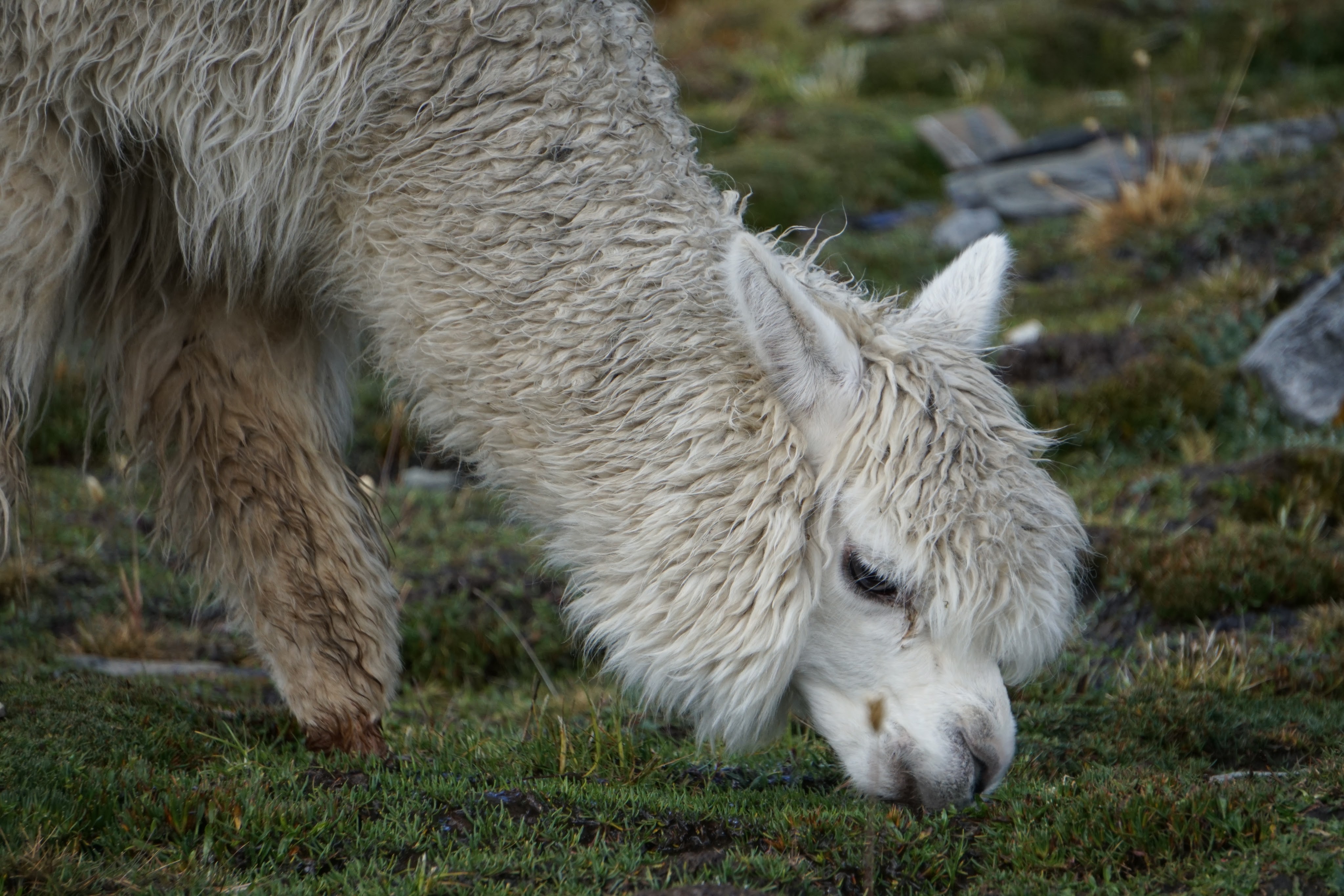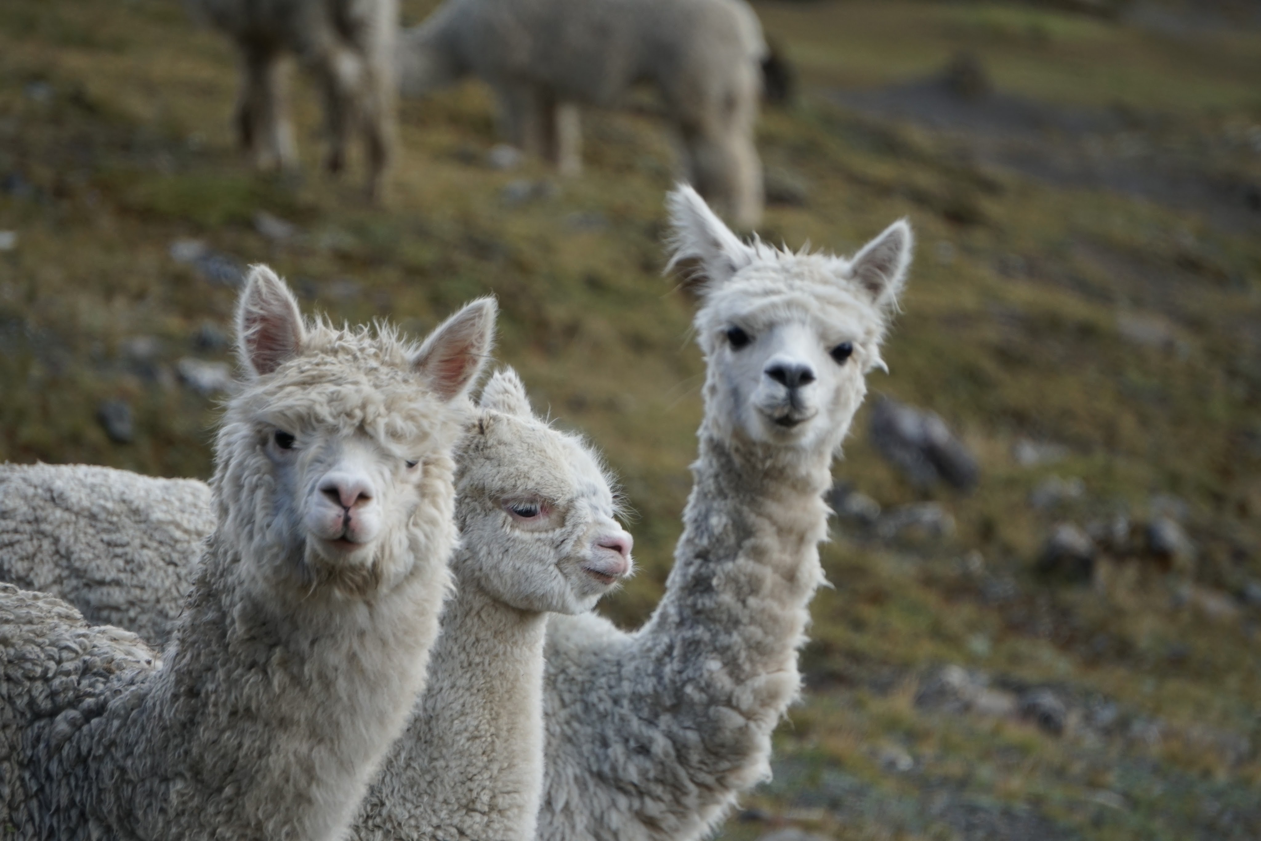 As we climb higher, we meet a herd of alpaca. They are busy living their best lives and grazing along the hillside.