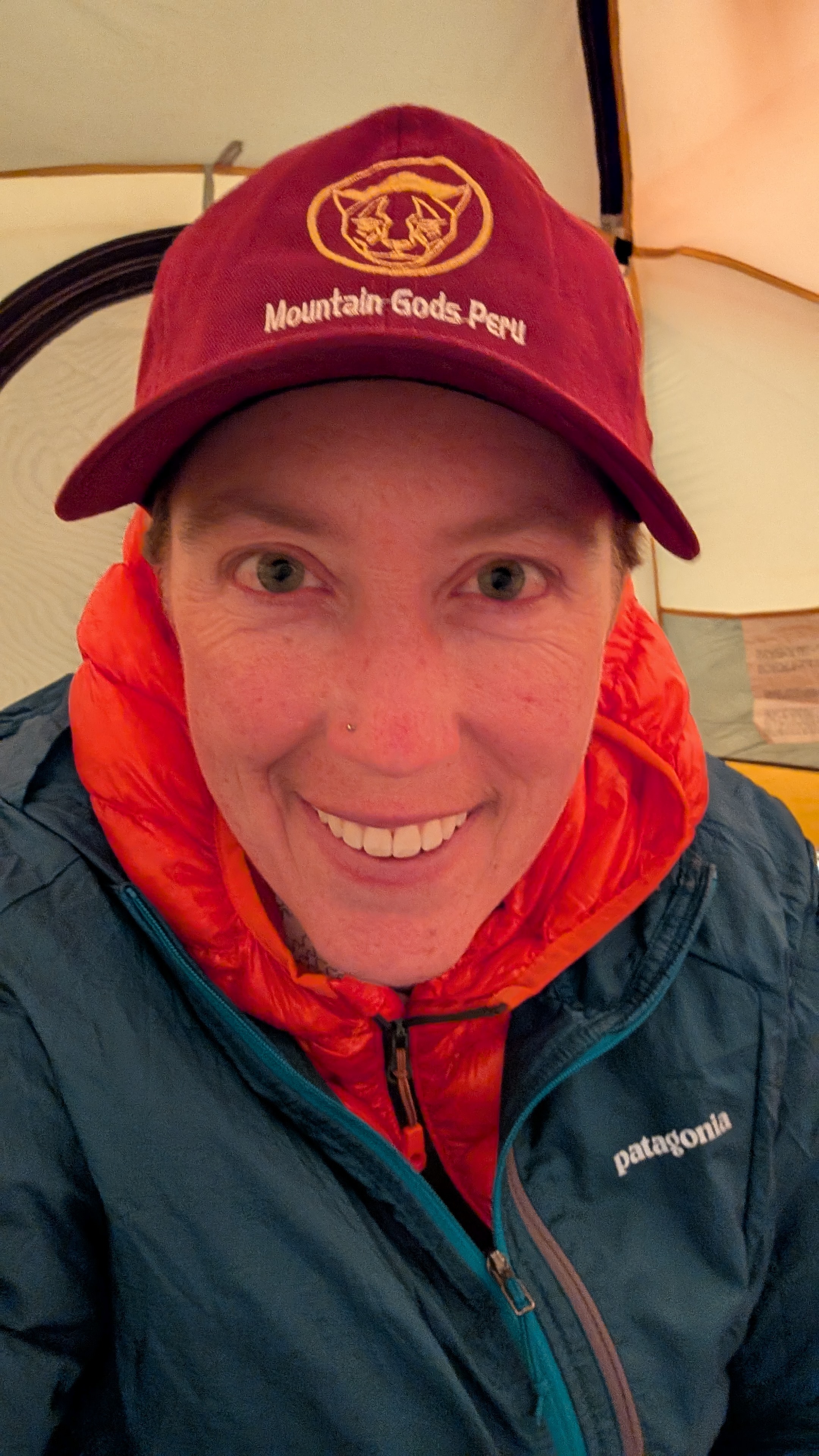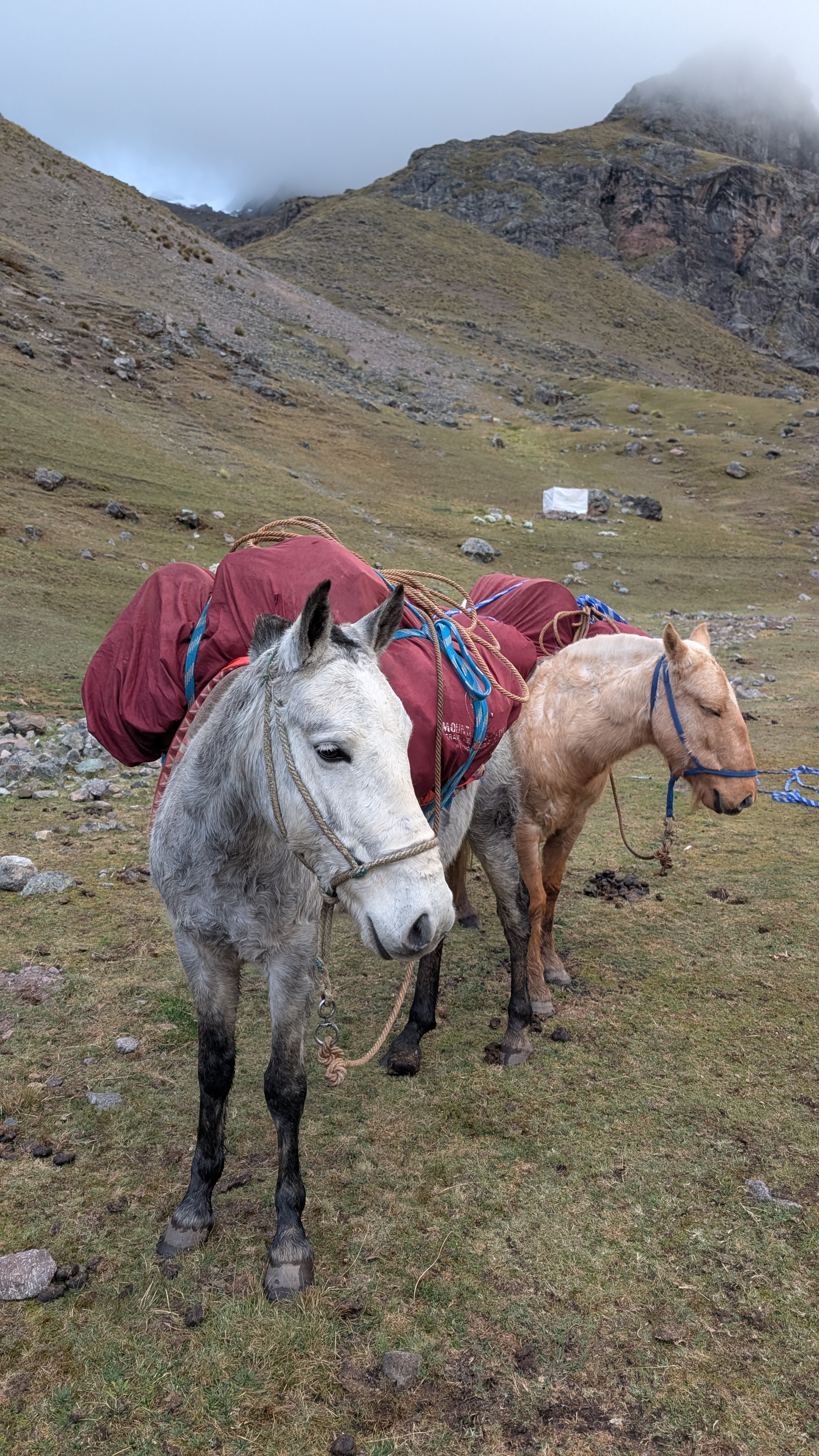 I change out of my hiking clothes and bundle up in layers since we’re camped at 15,214 ft. I resume my routine that I established on my first trek and get my tent organized before heading to the mess tent for happy hour popcorn and hot chocolate. After a day of hustle, I meet the rest of our team; Julio the chef and Helario the horseman. After a wonderful dinner, I’m happy to get in my sleeping bag and warm up while I write in my journal.