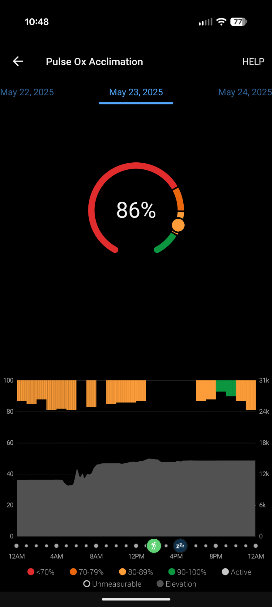 42% acclimated to 15,214′, fully acclimated to 7874′