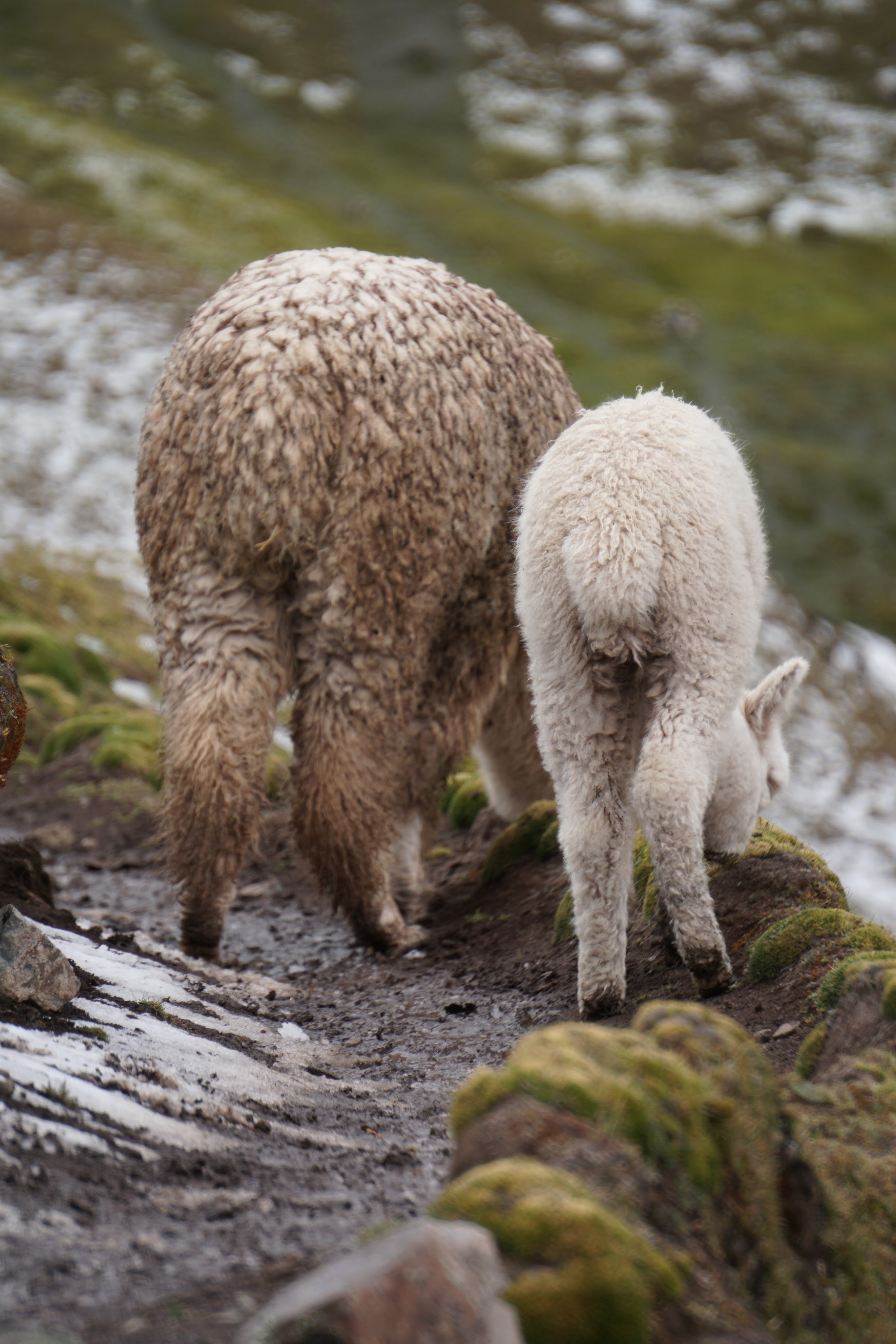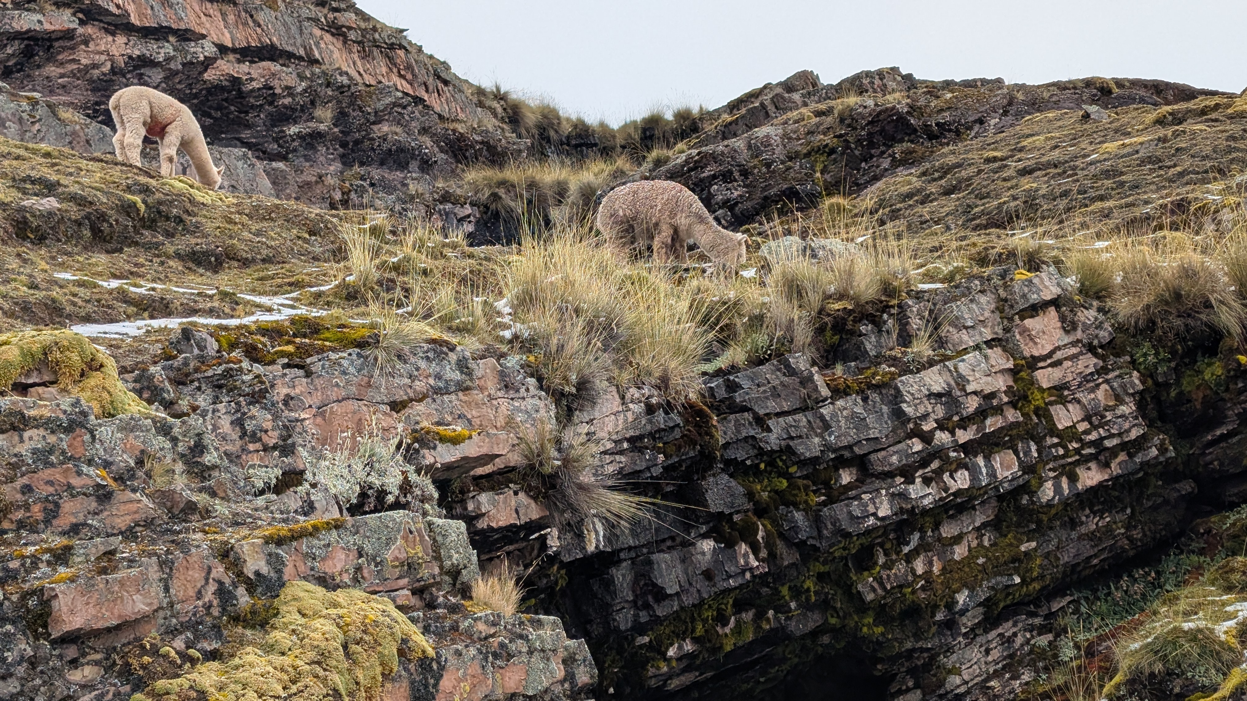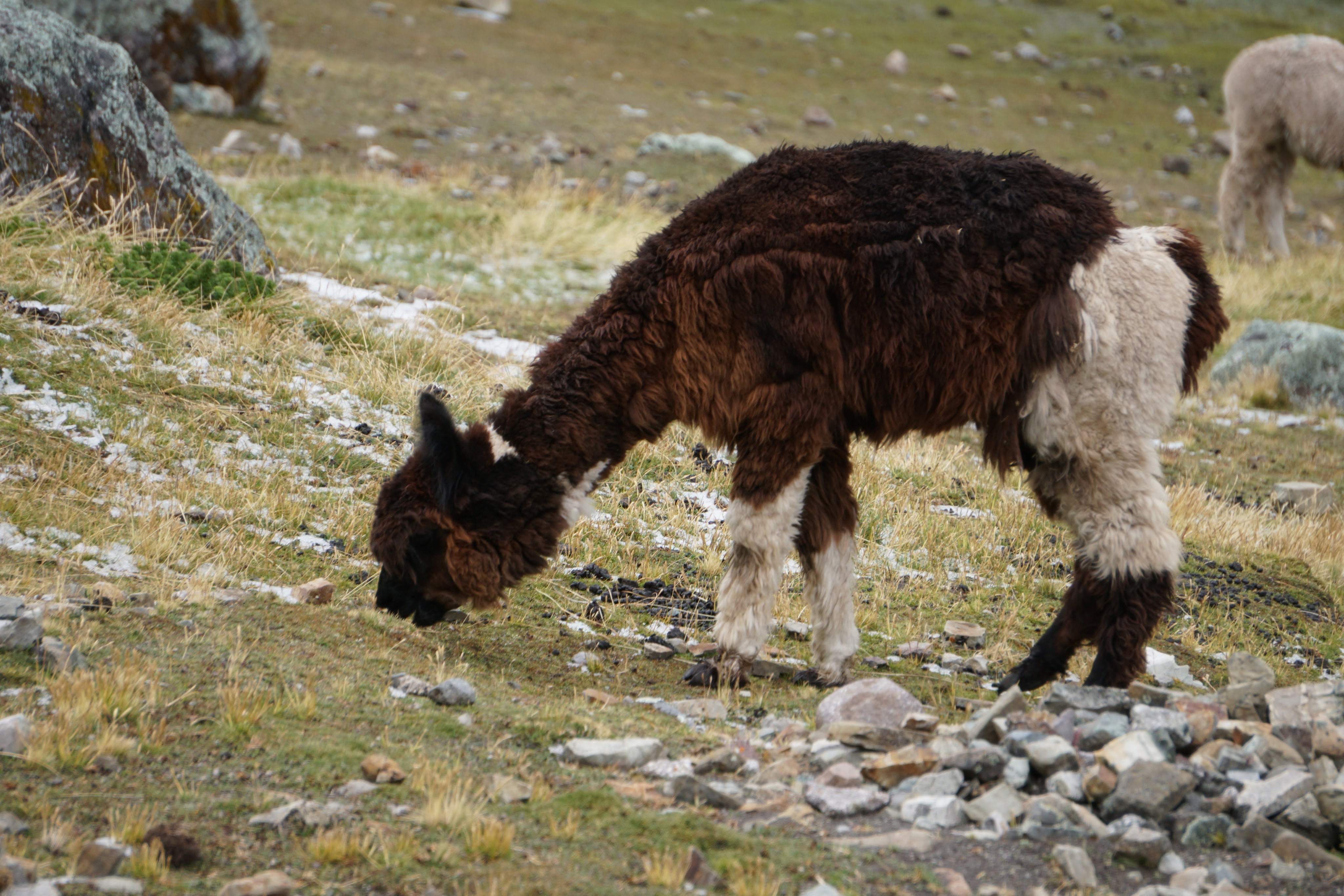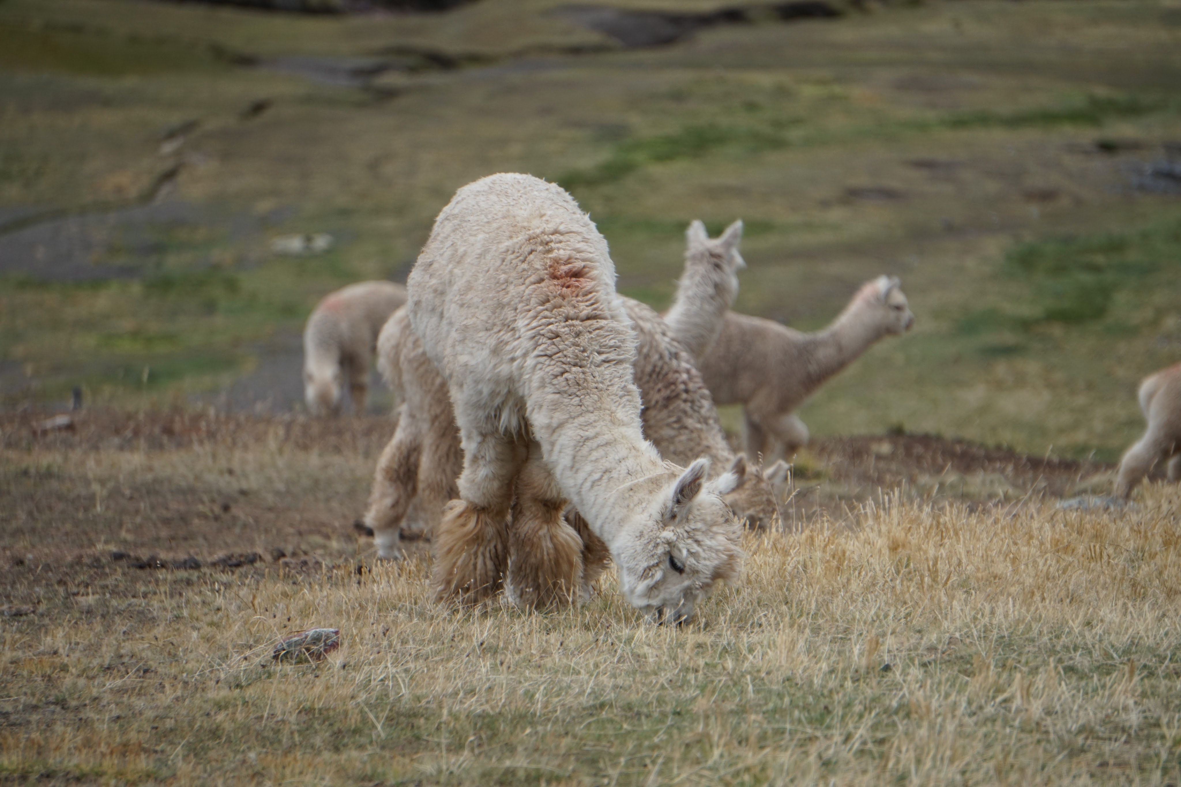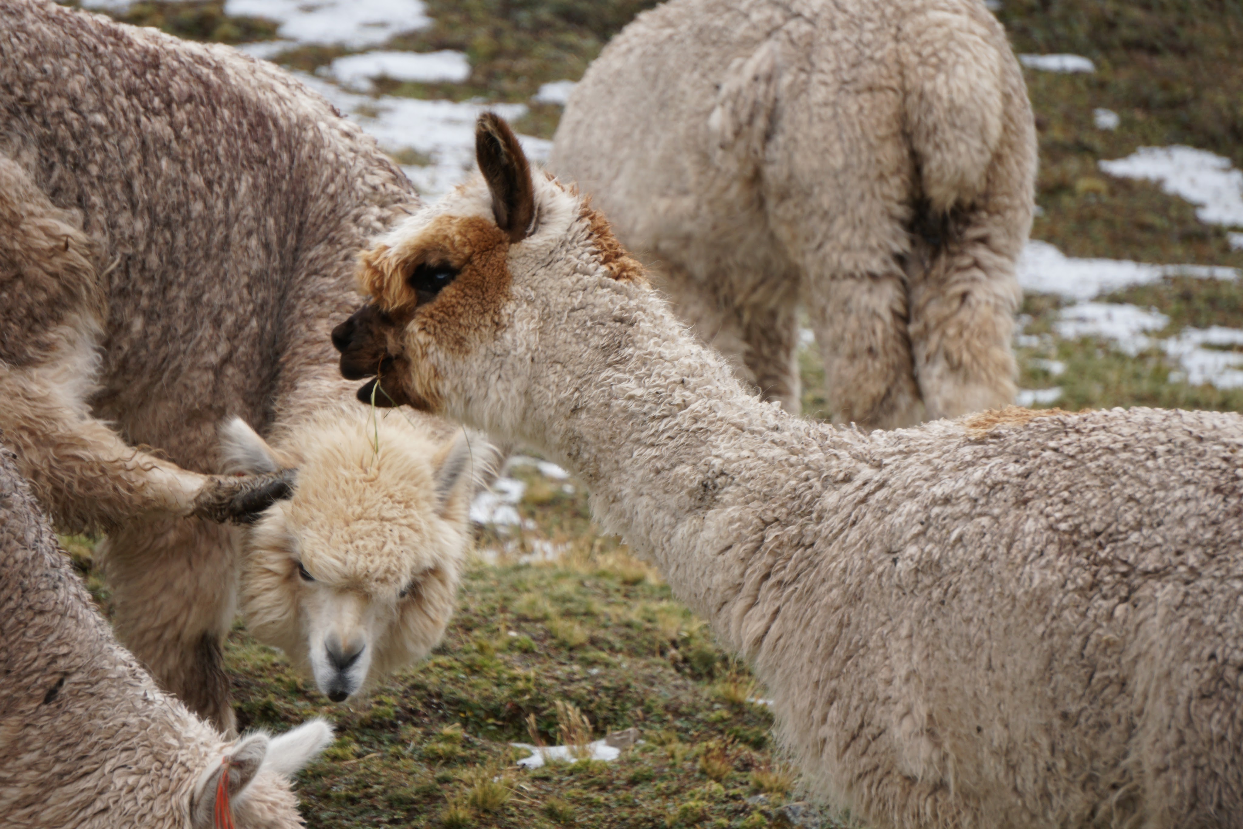 We make quick tracks downhill and as we approach the bottom of the valley, we pass near another herd of alpaca with a few llama too.
