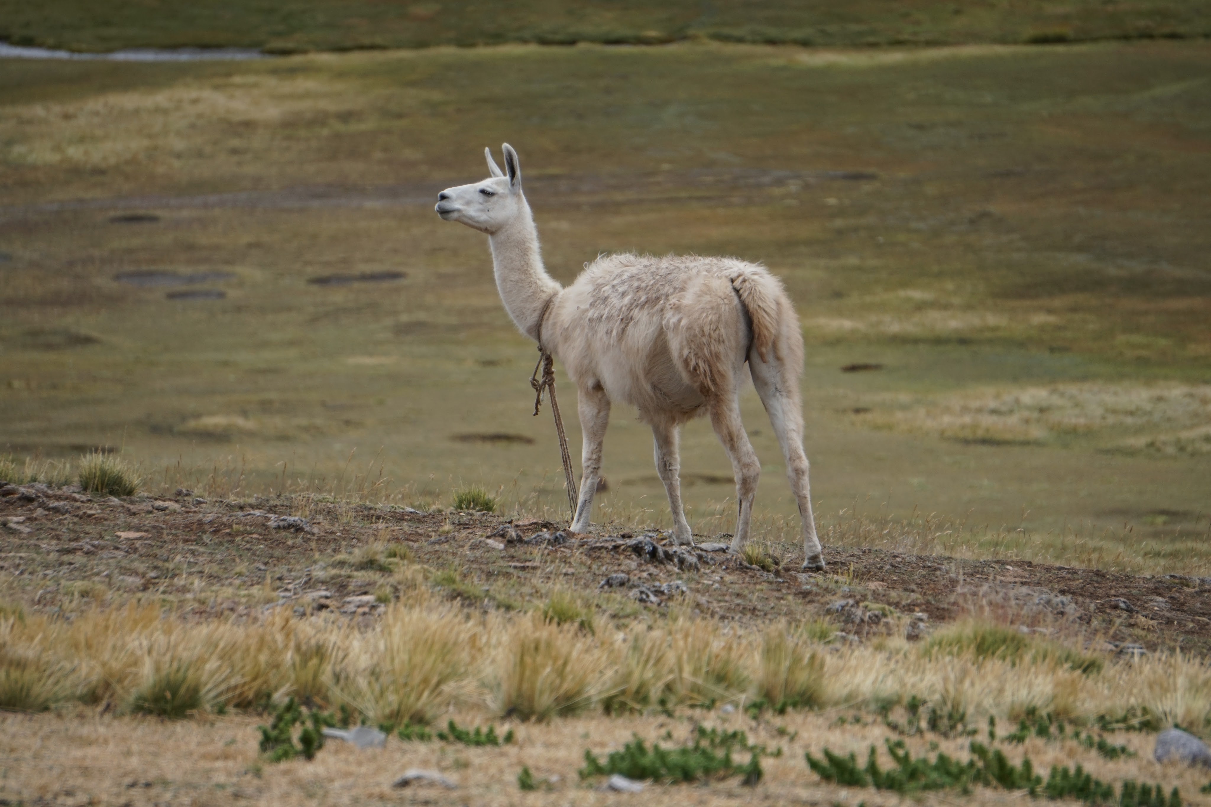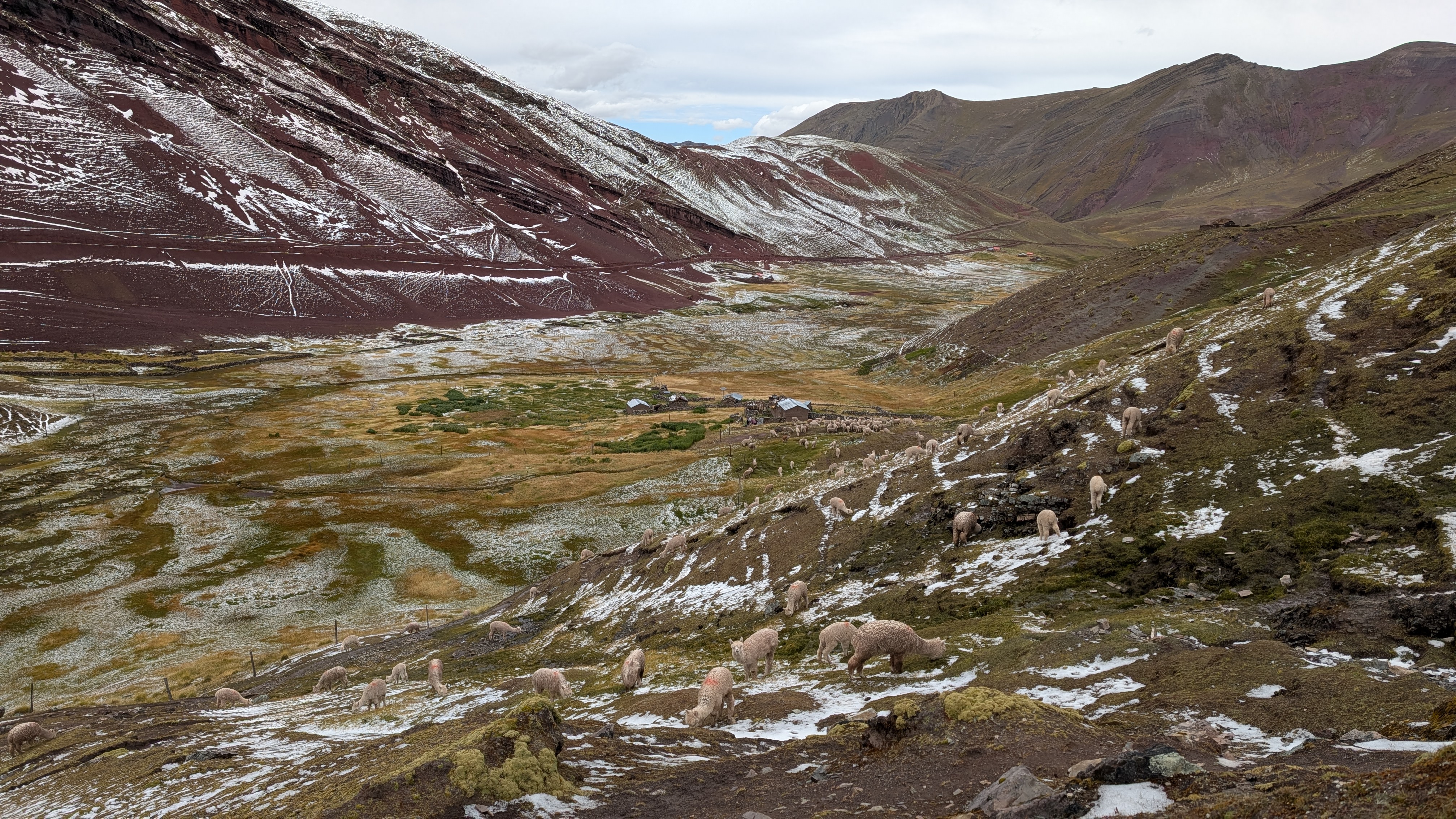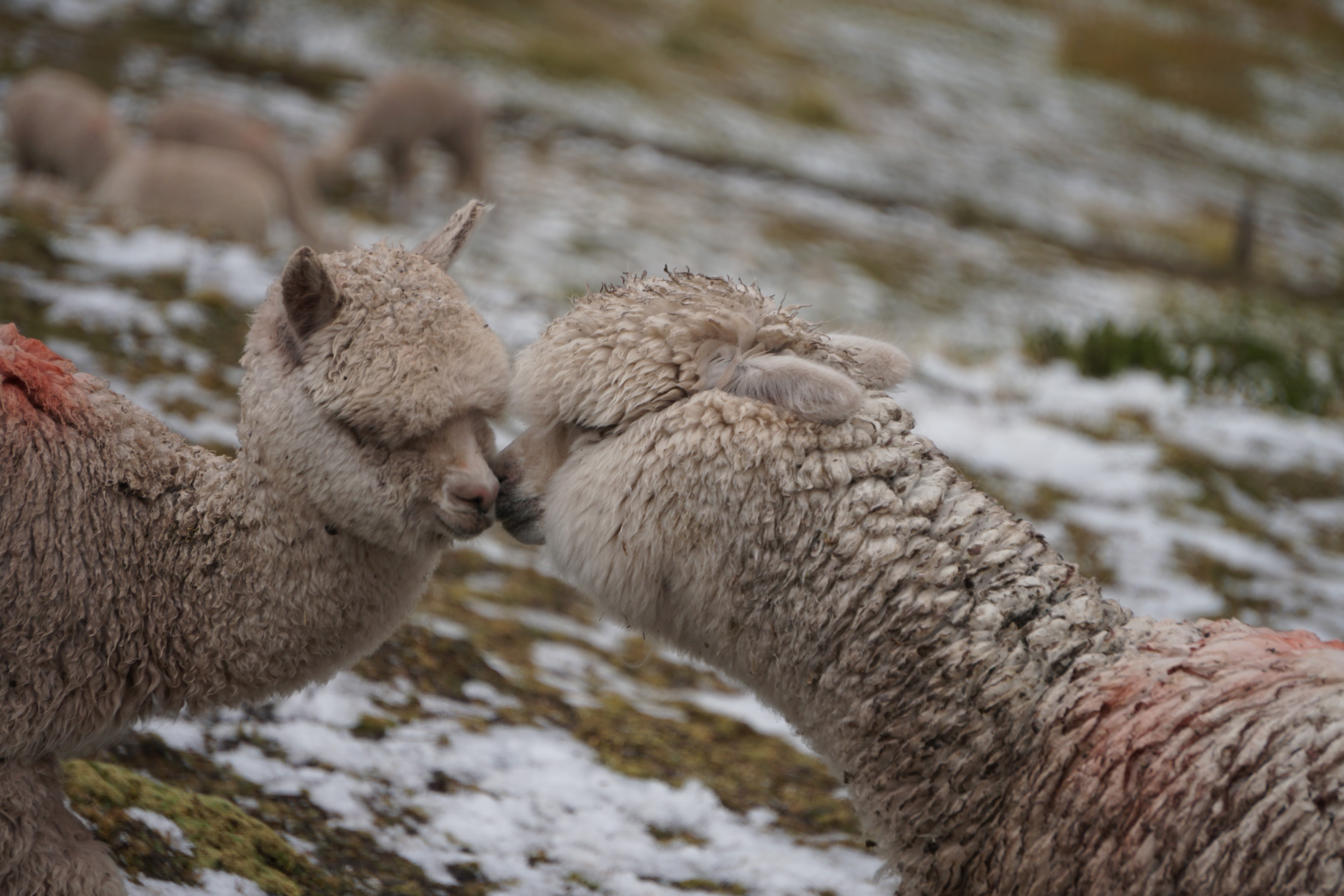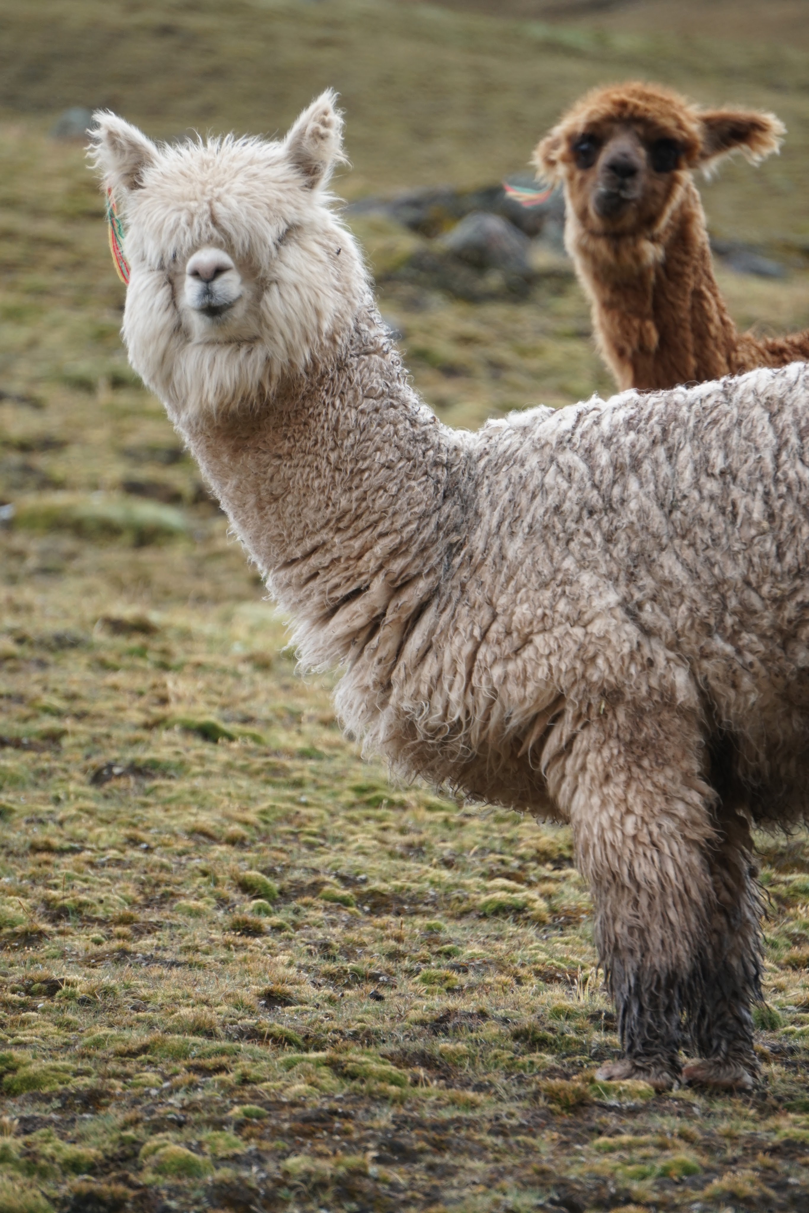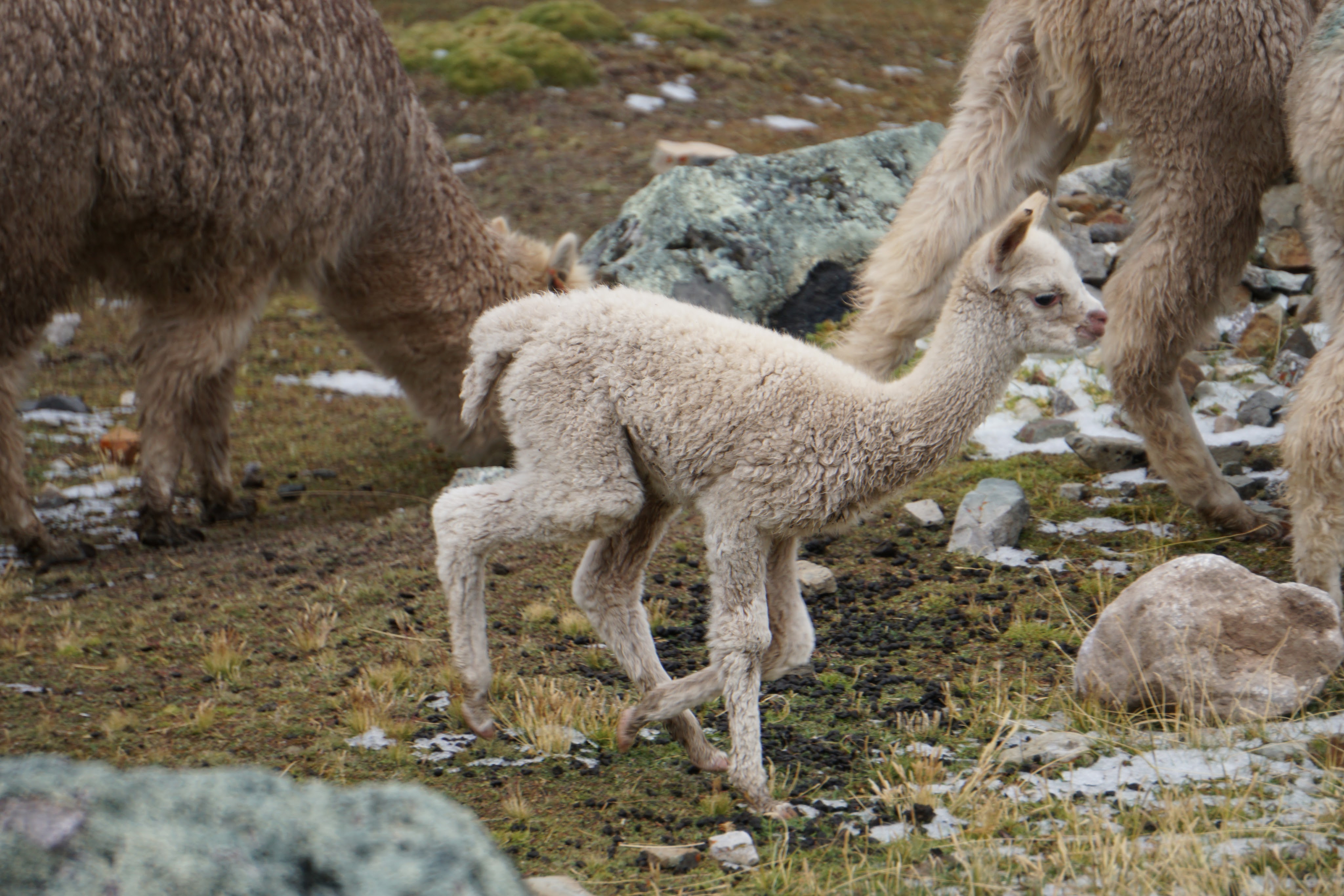 We make quick tracks downhill and as we approach the bottom of the valley, we pass near another herd of alpaca with a few llama too.