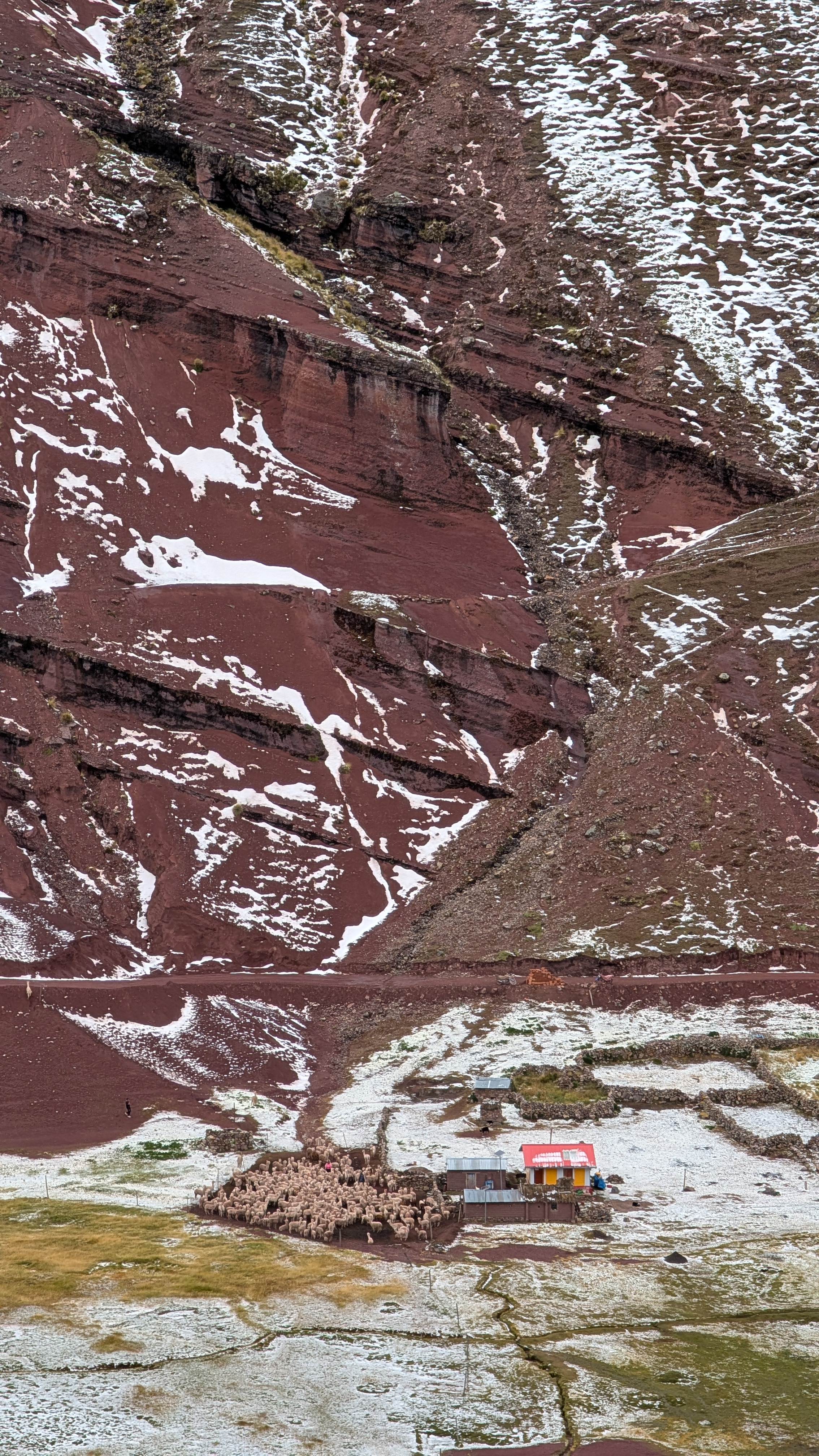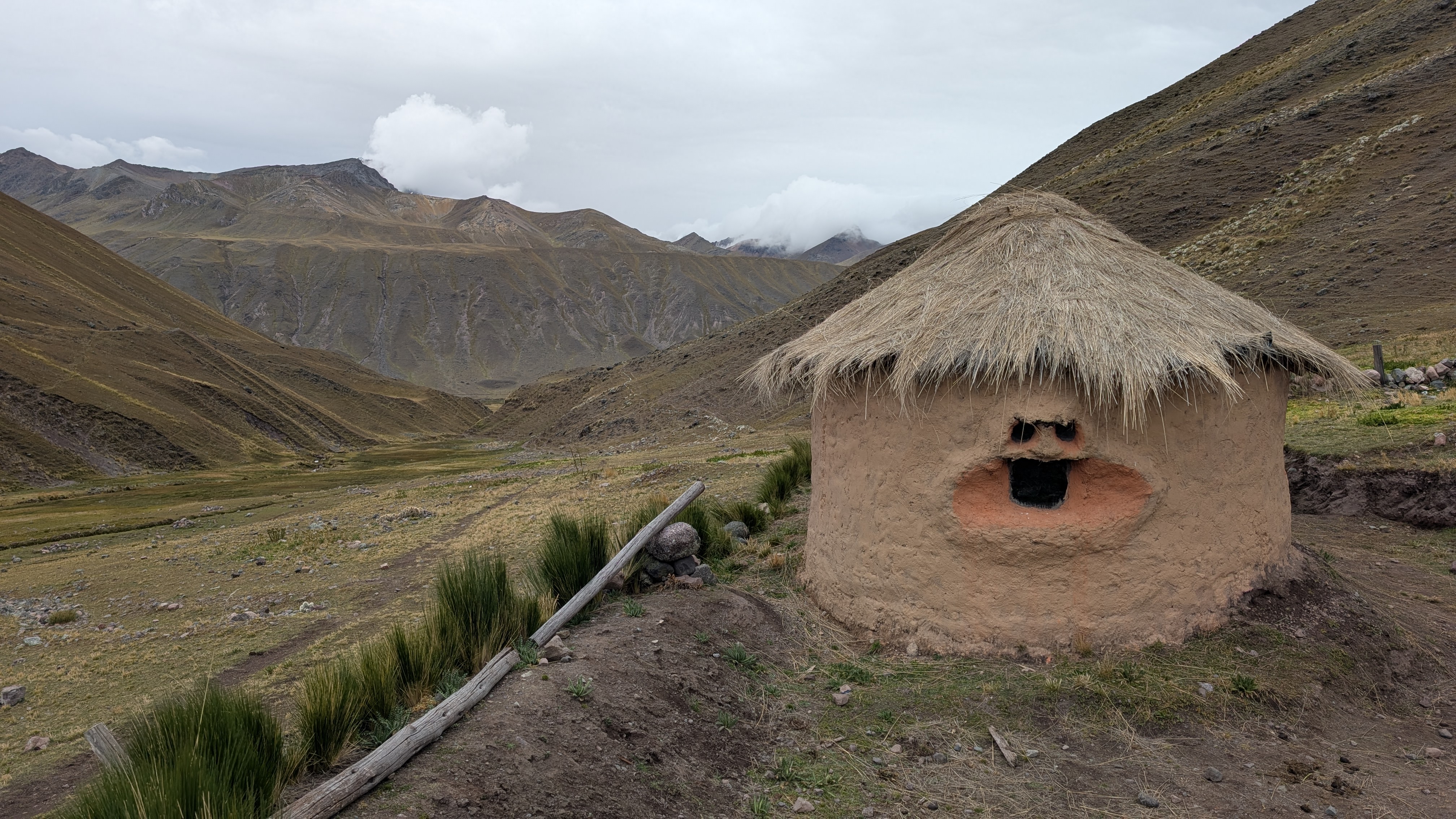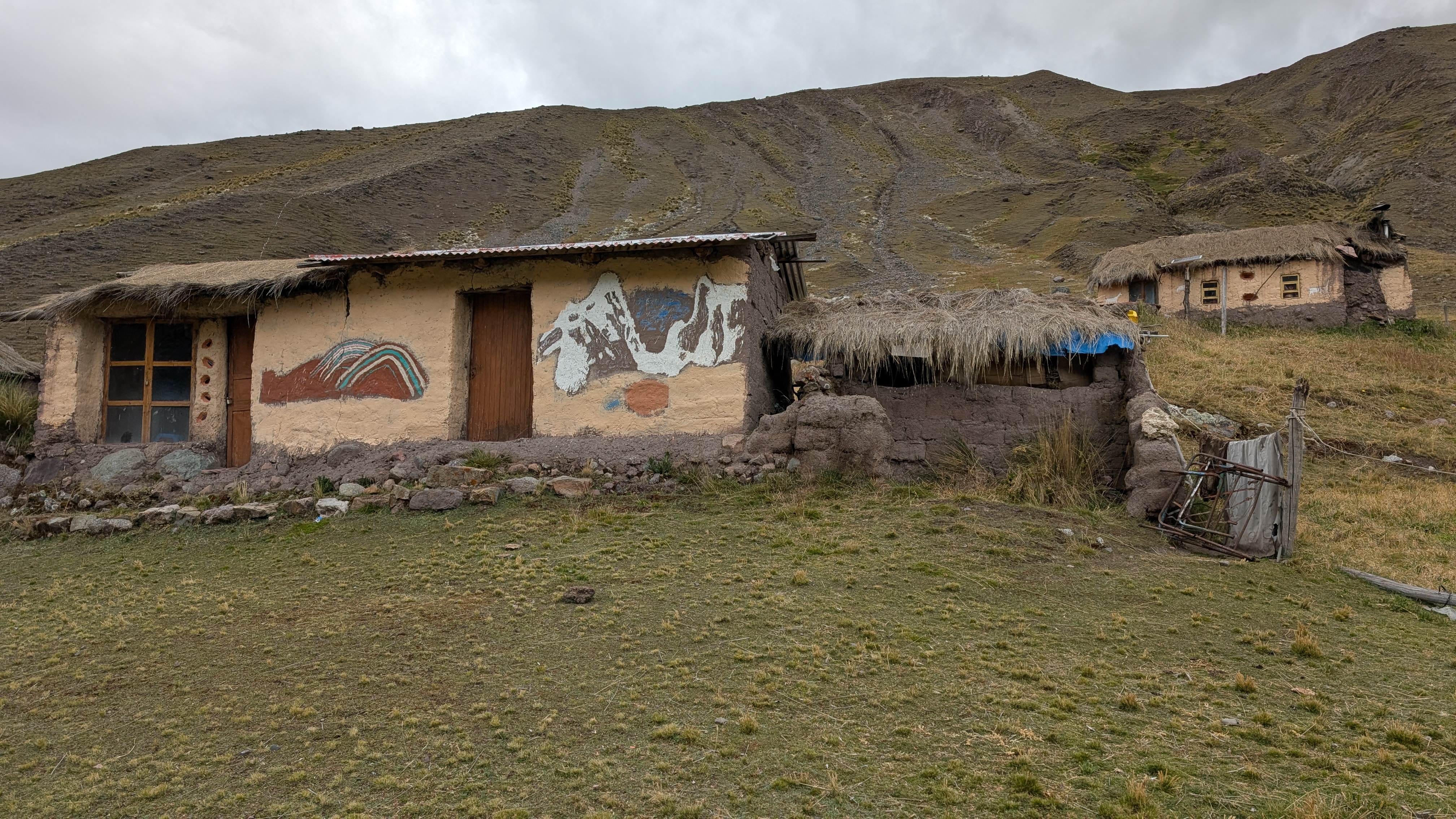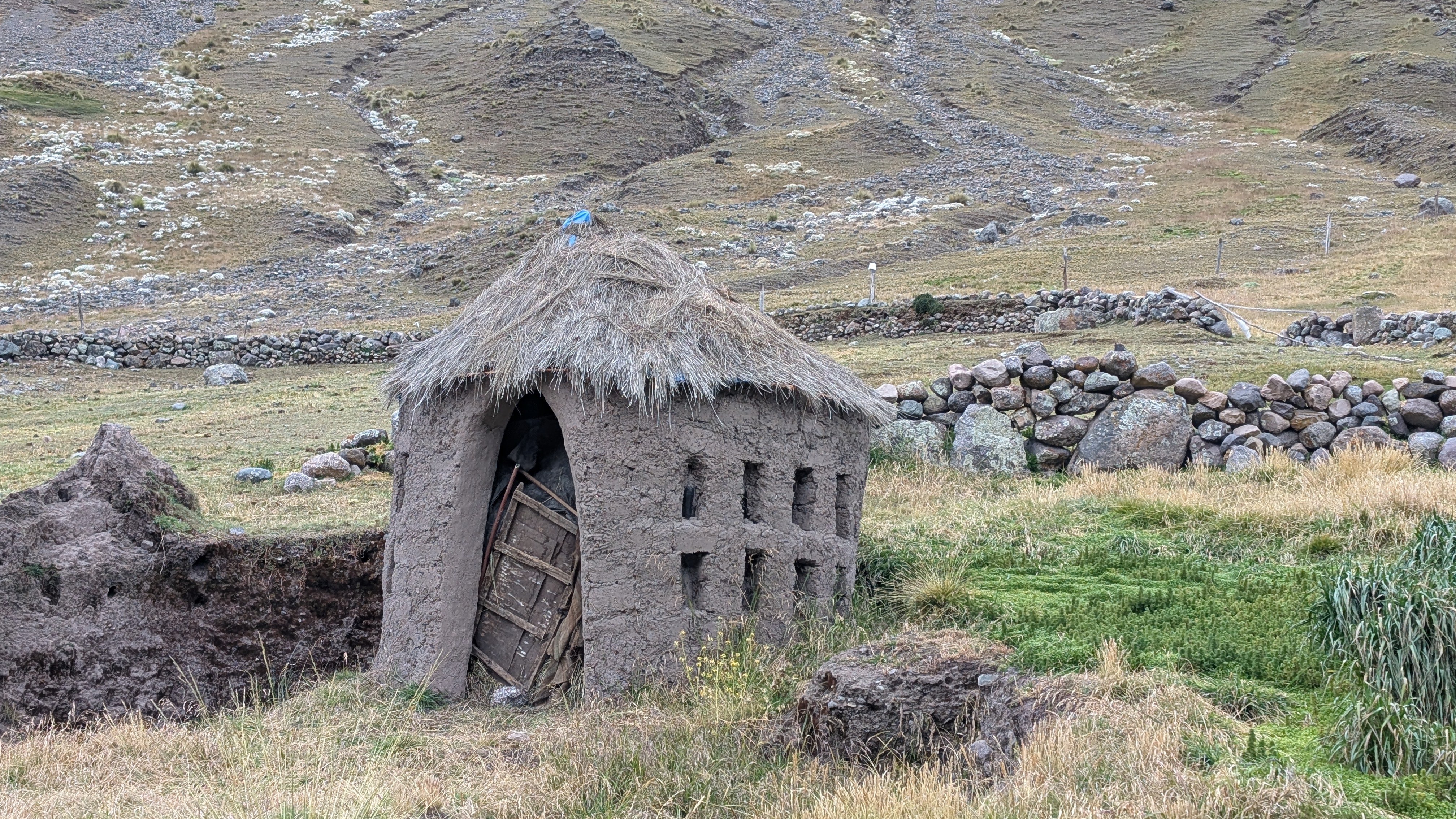 We hike far above alpaca farms where circular pens made out of rocks sit adjacent to small homes.