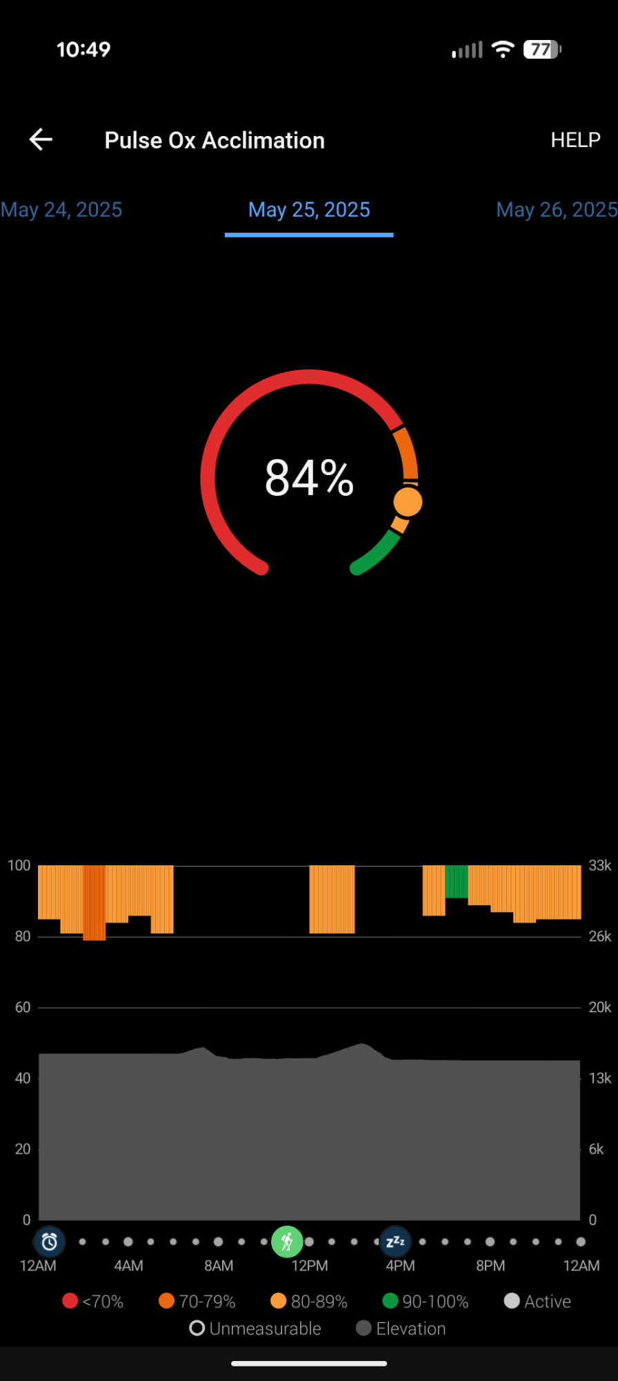 55% acclimated to 15,207′, fully acclimated to 9,514′