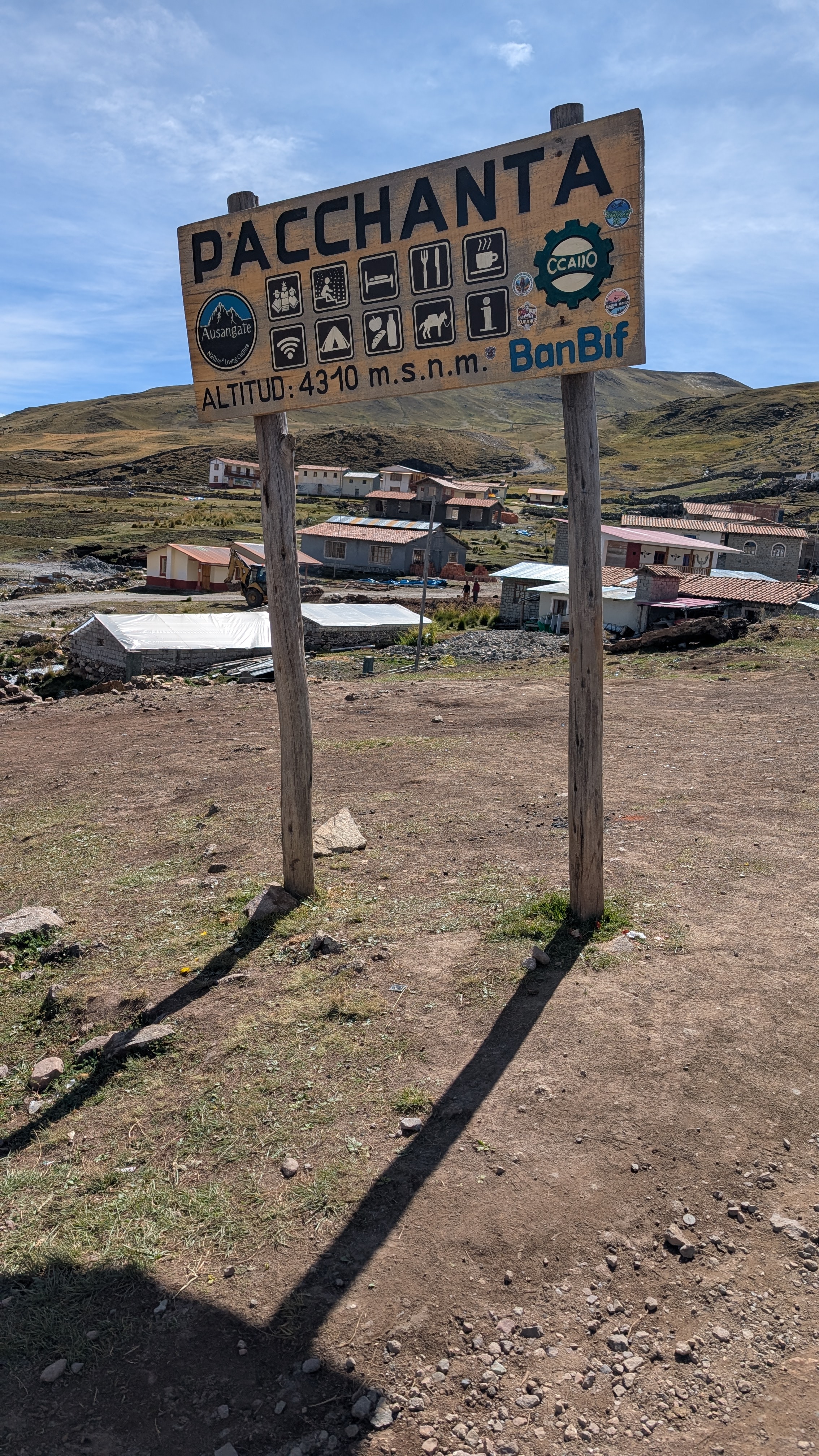 Above: The sign reads Bienvenidos a nuestra comunidad Pacchanta – Welcome to our Pacchanta Community