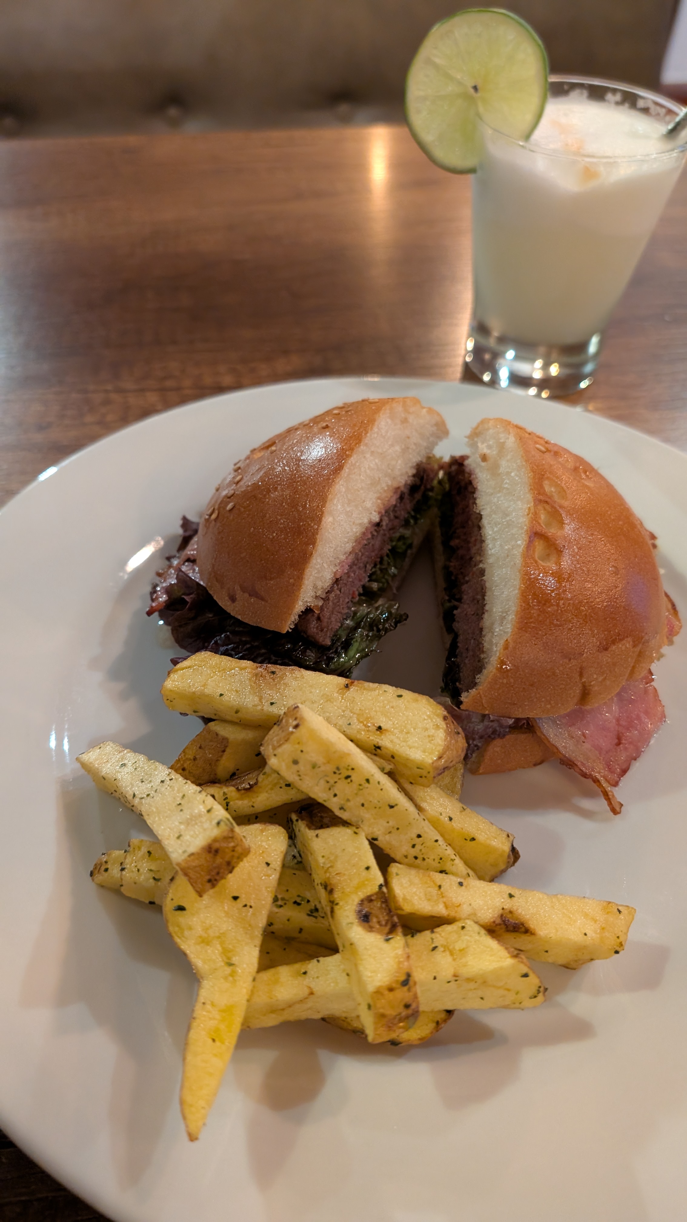 I shower and refresh myself before heading up to the restaurant about 6 pm for a celebration pisco sour. I sit sipping my wonderfully frothy pisco while looking out across the sunset glowing Cusco. What an amazing two weeks this has been! Salud! Pisco sours are a Peruvian tradition made from grape brandy, lime juice, simple syrup, egg white, and bitters. The hiker hunger is real and I give in to the temptation of a hamburger and fries.