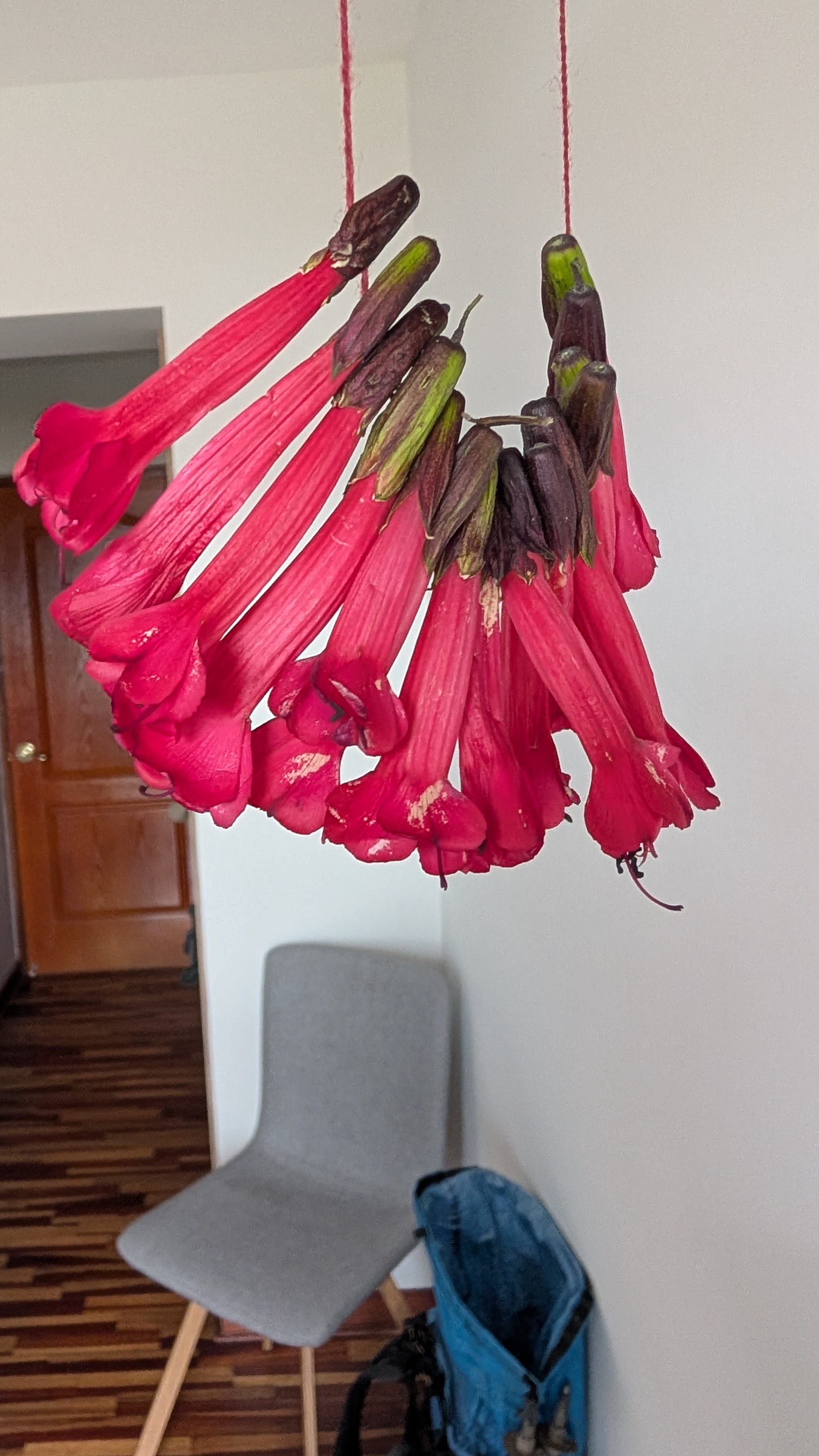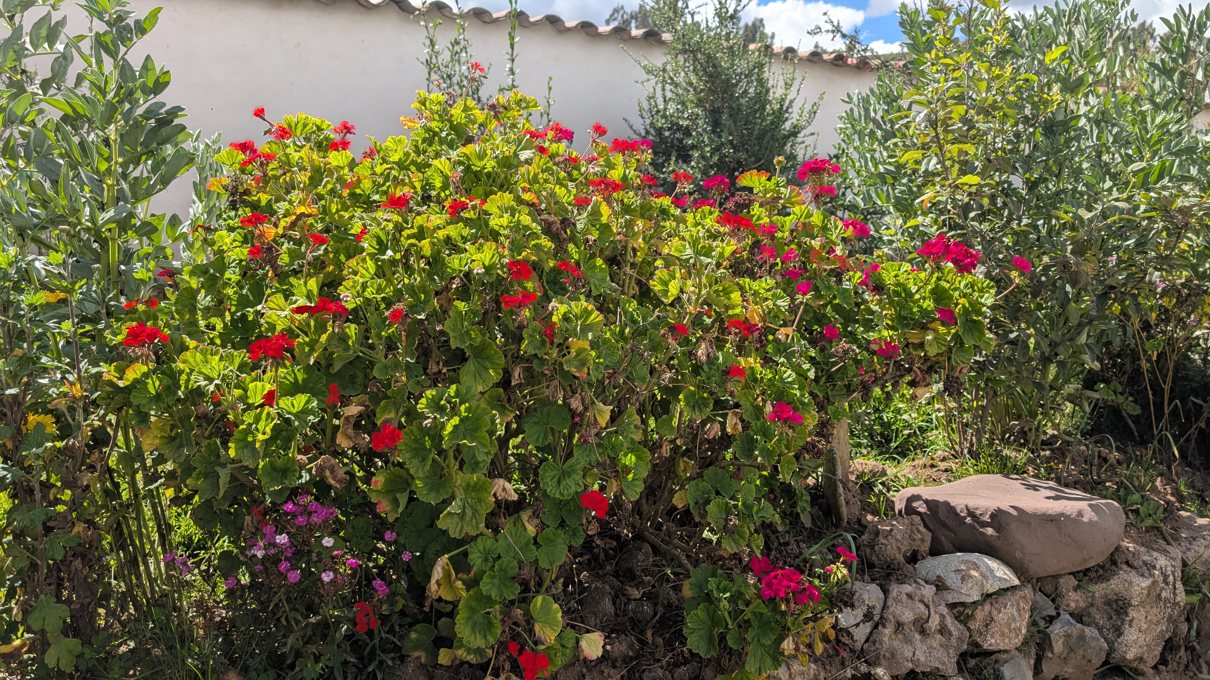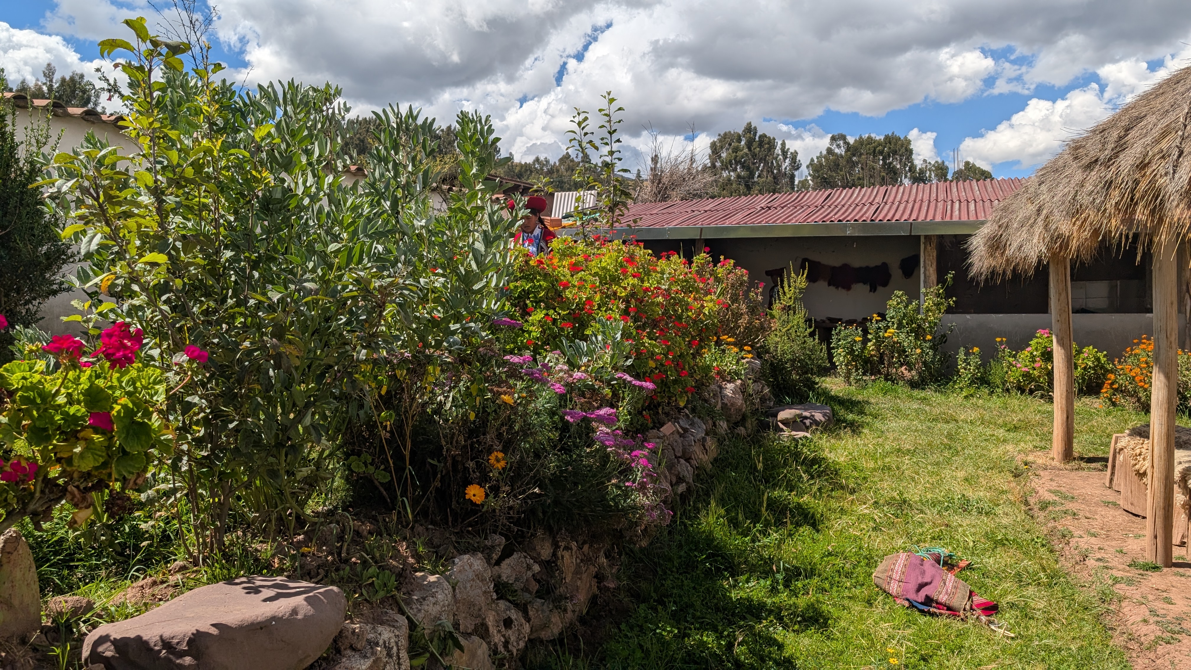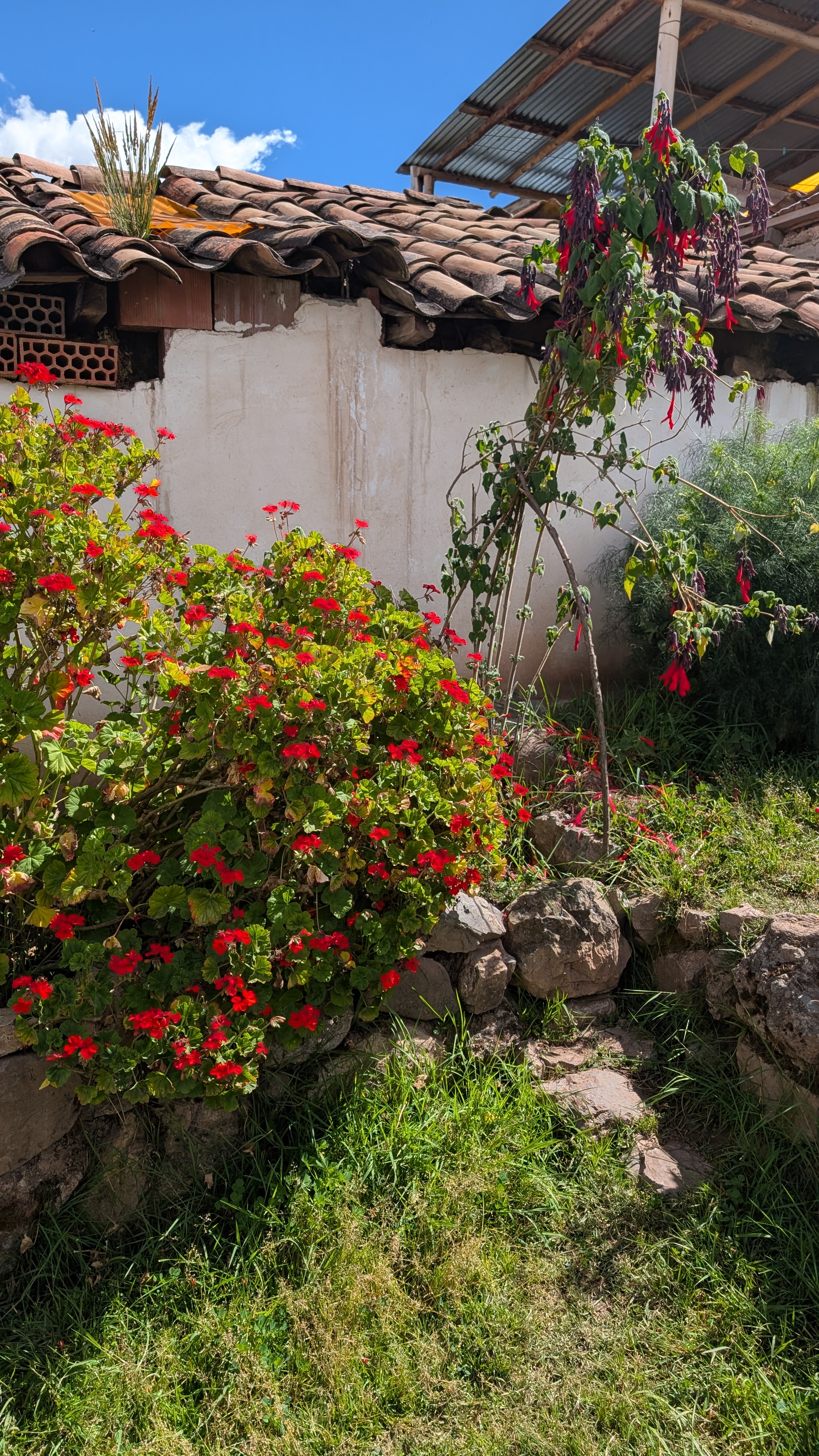 Back at the compound, I admire all the flowers as they prepare to show me about the weaving process from start to finish. Daisies, geraniums, Salvia, Cantua and more!