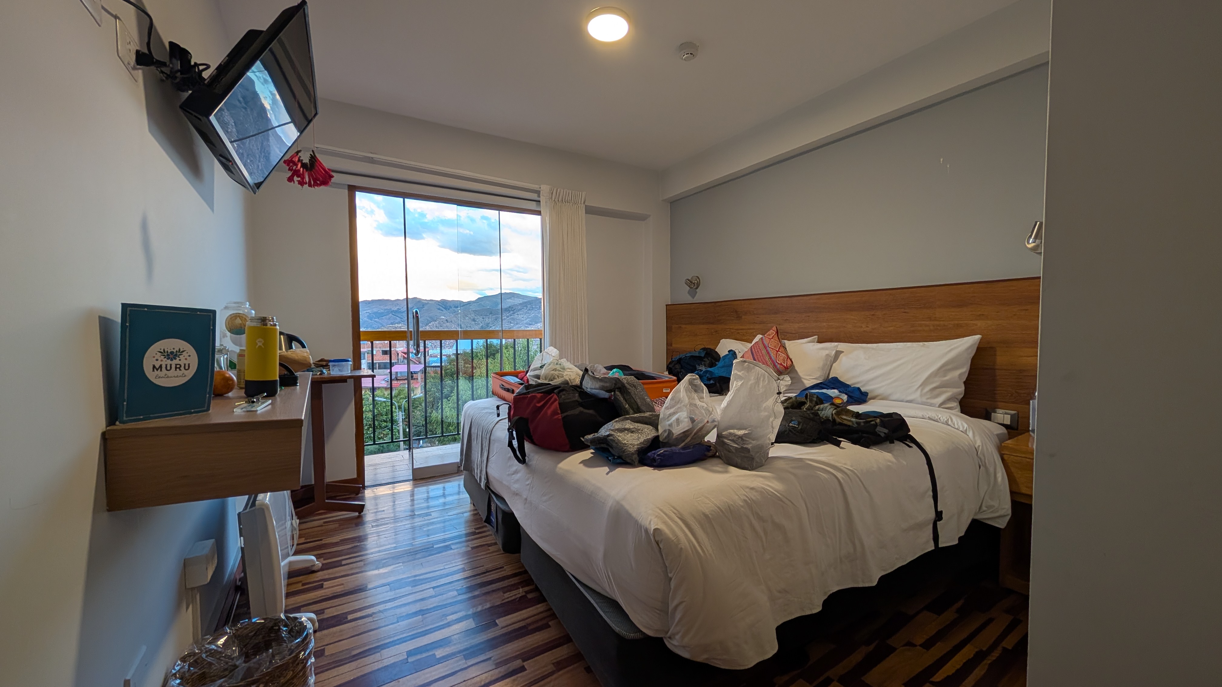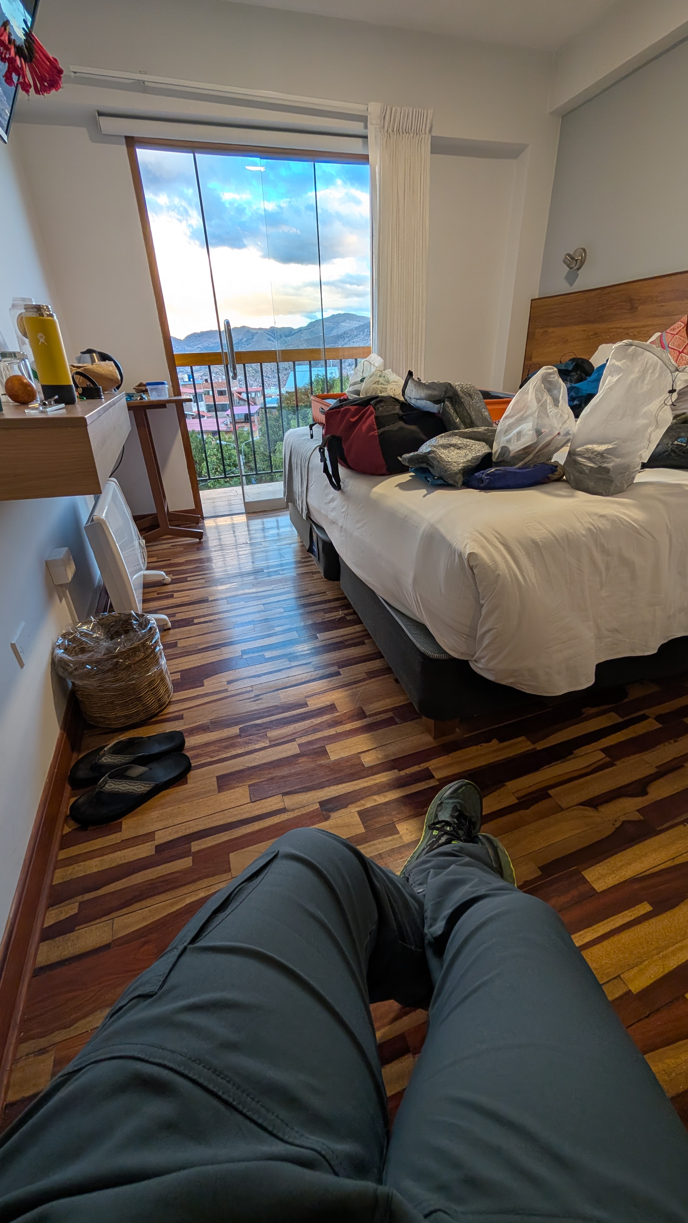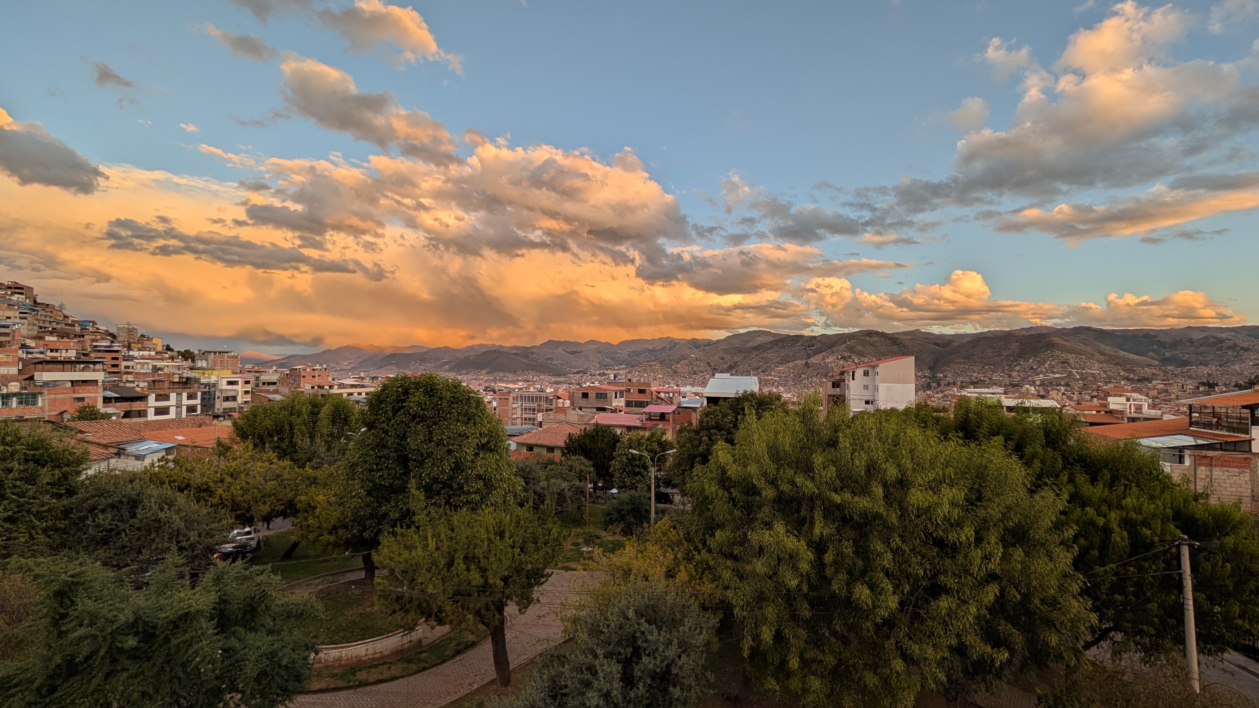 We wind our way back to Cusco and Ronnie drops me off at Muru Homely Hotel. He confirms that he’ll give me a ride to the airport tomorrow evening and we set a pickup time for my 935 pm flight. I head back to my room and start sorting and packing as a beautiful sunset paints across Cusco. Oatmeal dinner and asleep by 10 pm.