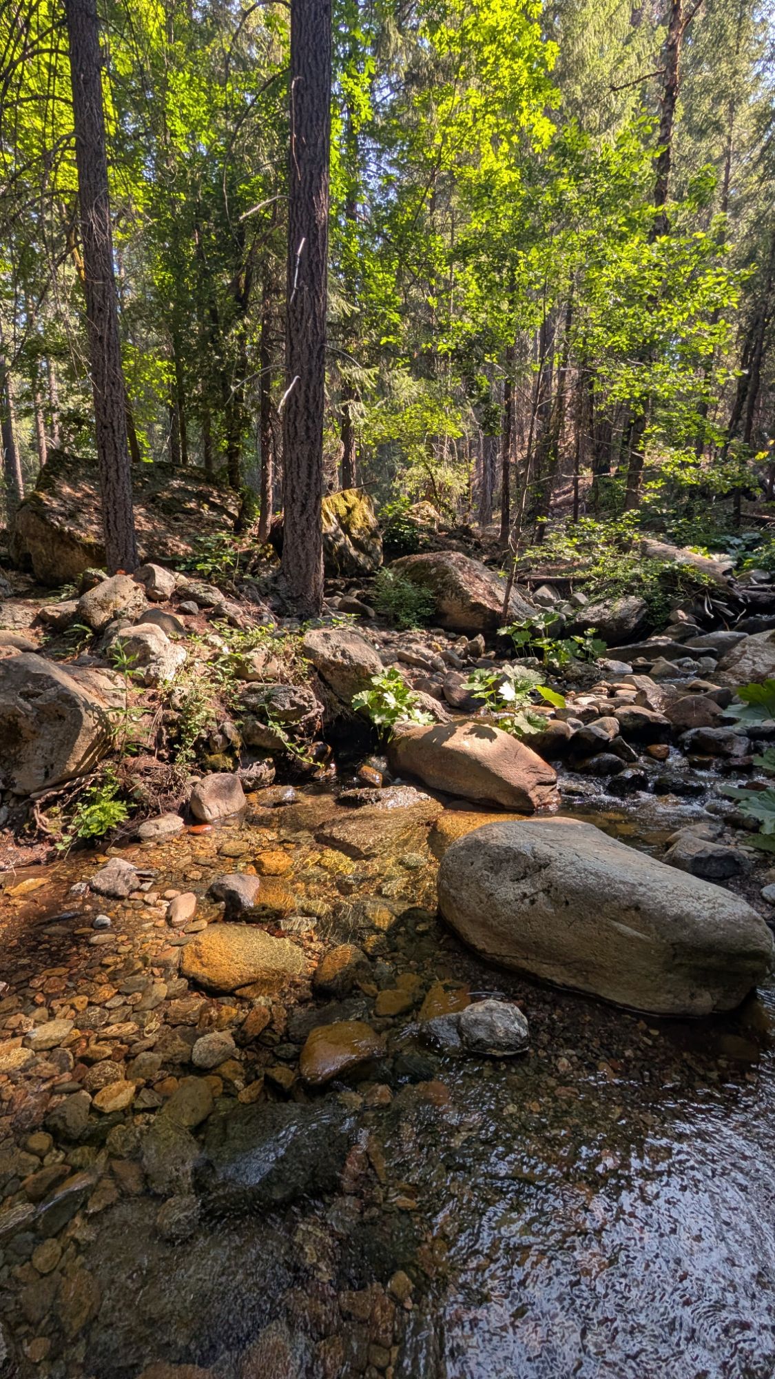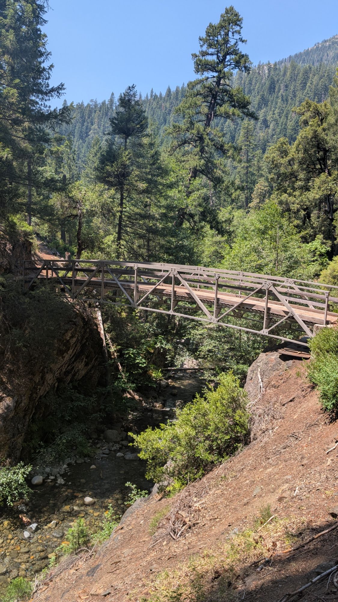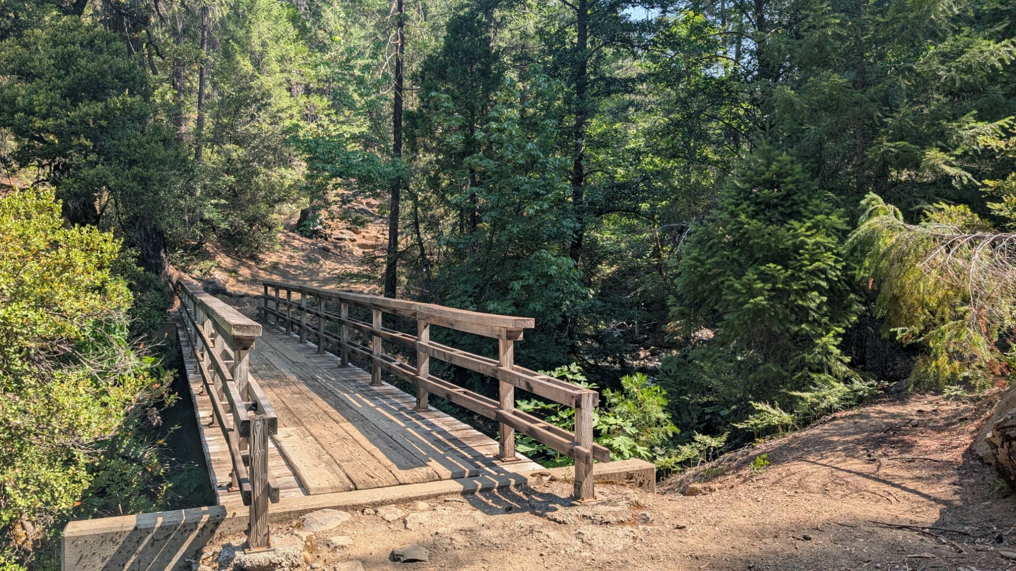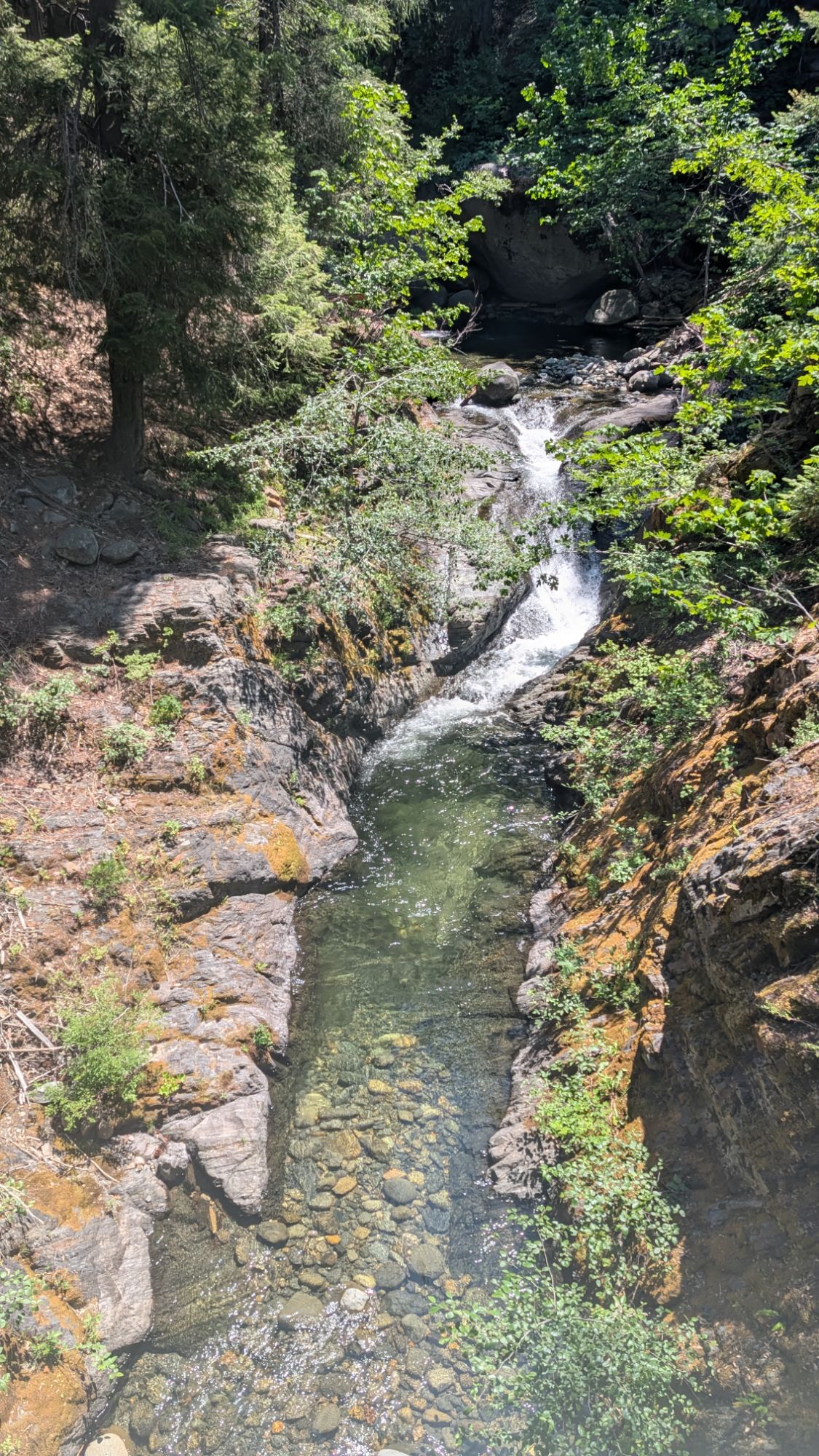 Deer Creek has a big bridge over it and the most tempting swimming hole. In an alternate universe where I am content just to sit all day, I would stop and spend the day chilling in this perfect water. It’s hard to see in the photo, but the dark area is just a few steps off the trail and is the perfect pool fed by a gushing waterfall.
