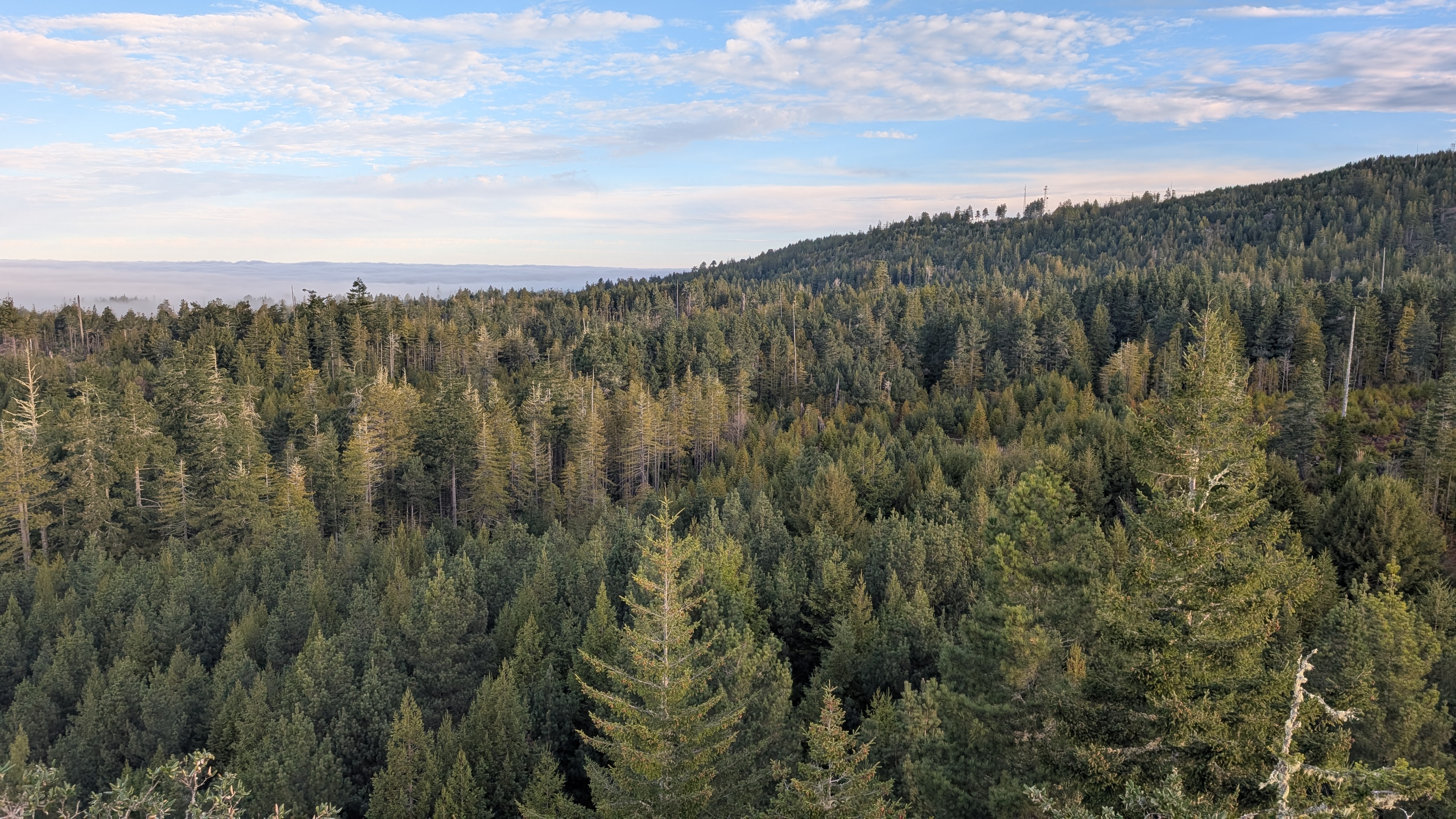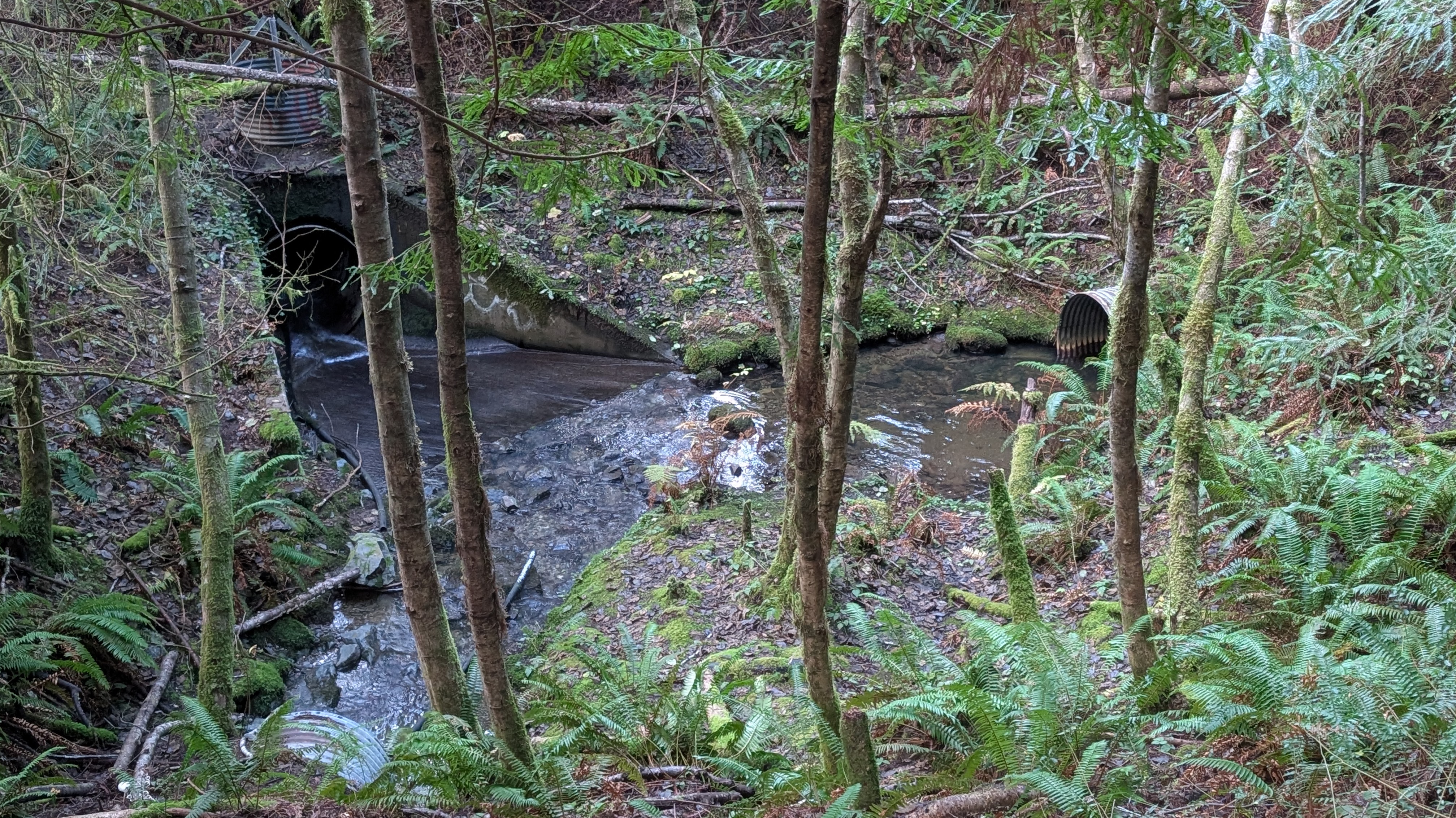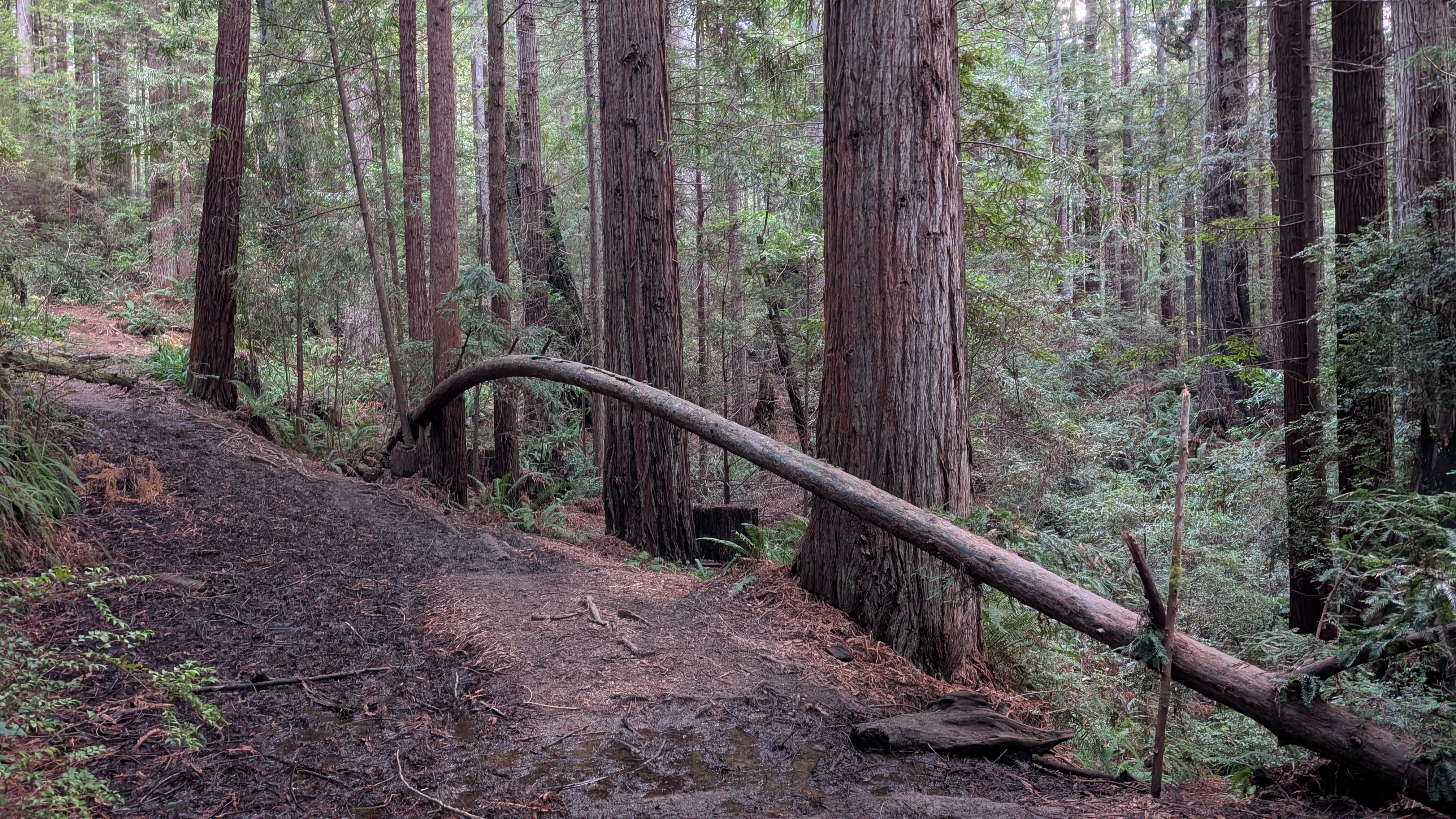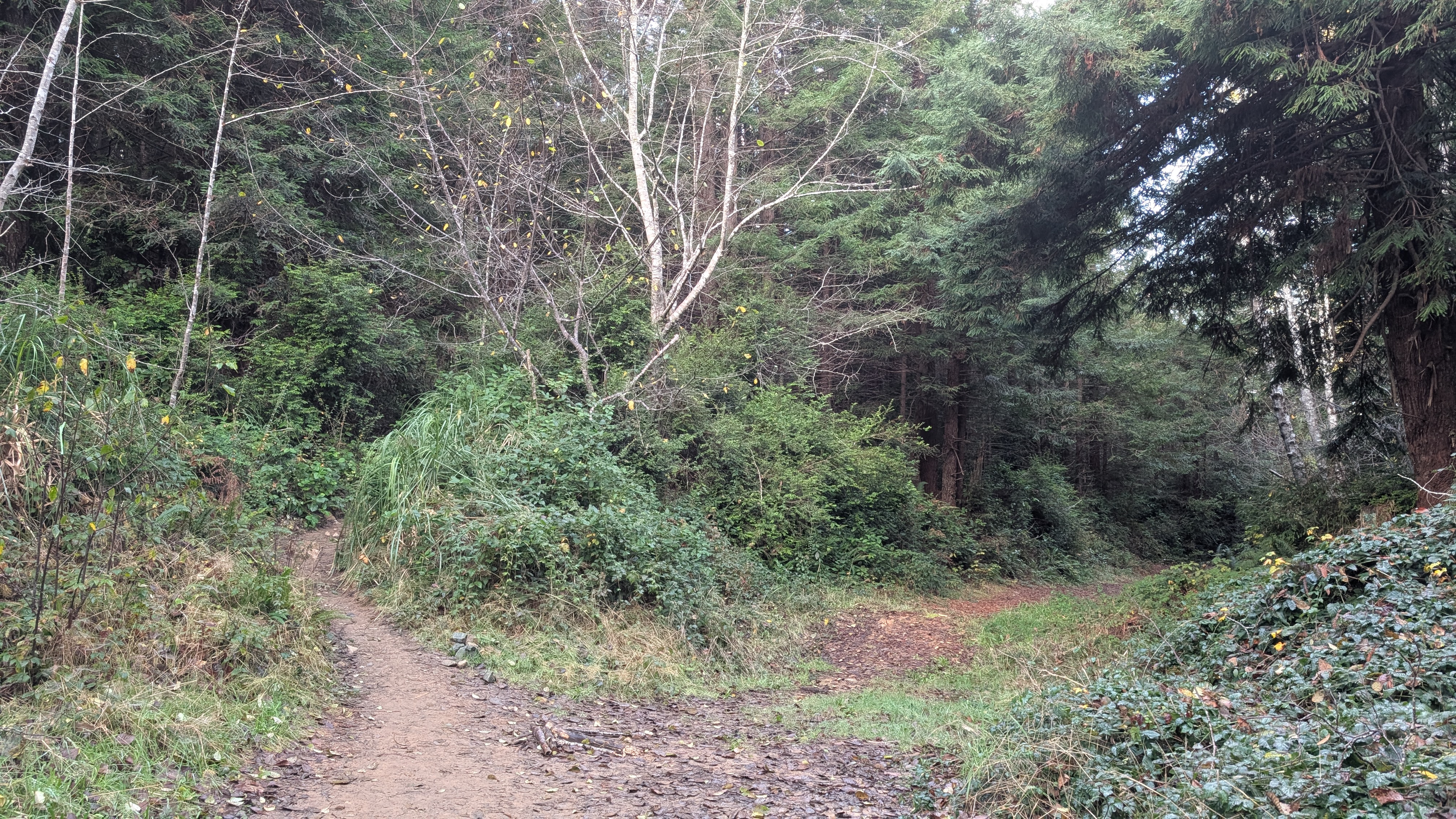 Plant diversity: Coyote brush, douglas fir, ferns lichens, coast redwood, salal.