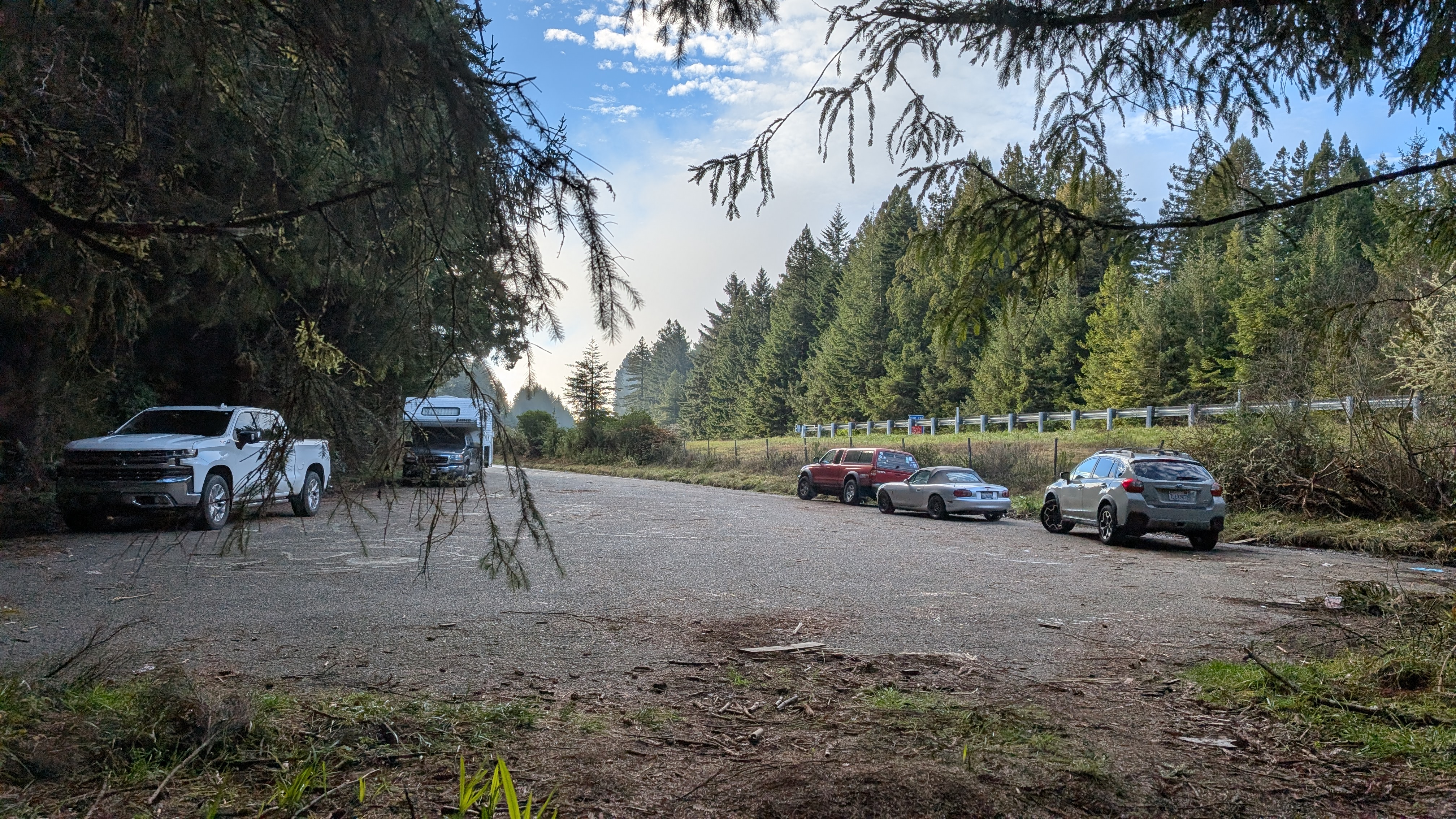 I had planned to add the hike from Trinidad Head to Elk Head but the fog is still hanging around and I feel the pressure of too many other things to do. I want to do this hike but on a sunny day so that I may fully enjoy the beautiful Pacific. Plus, January is a great time to see migrating whales! I drive down to Trinidad State Beach and Trinidad Head is still hiding in the fog. Alas, another time!