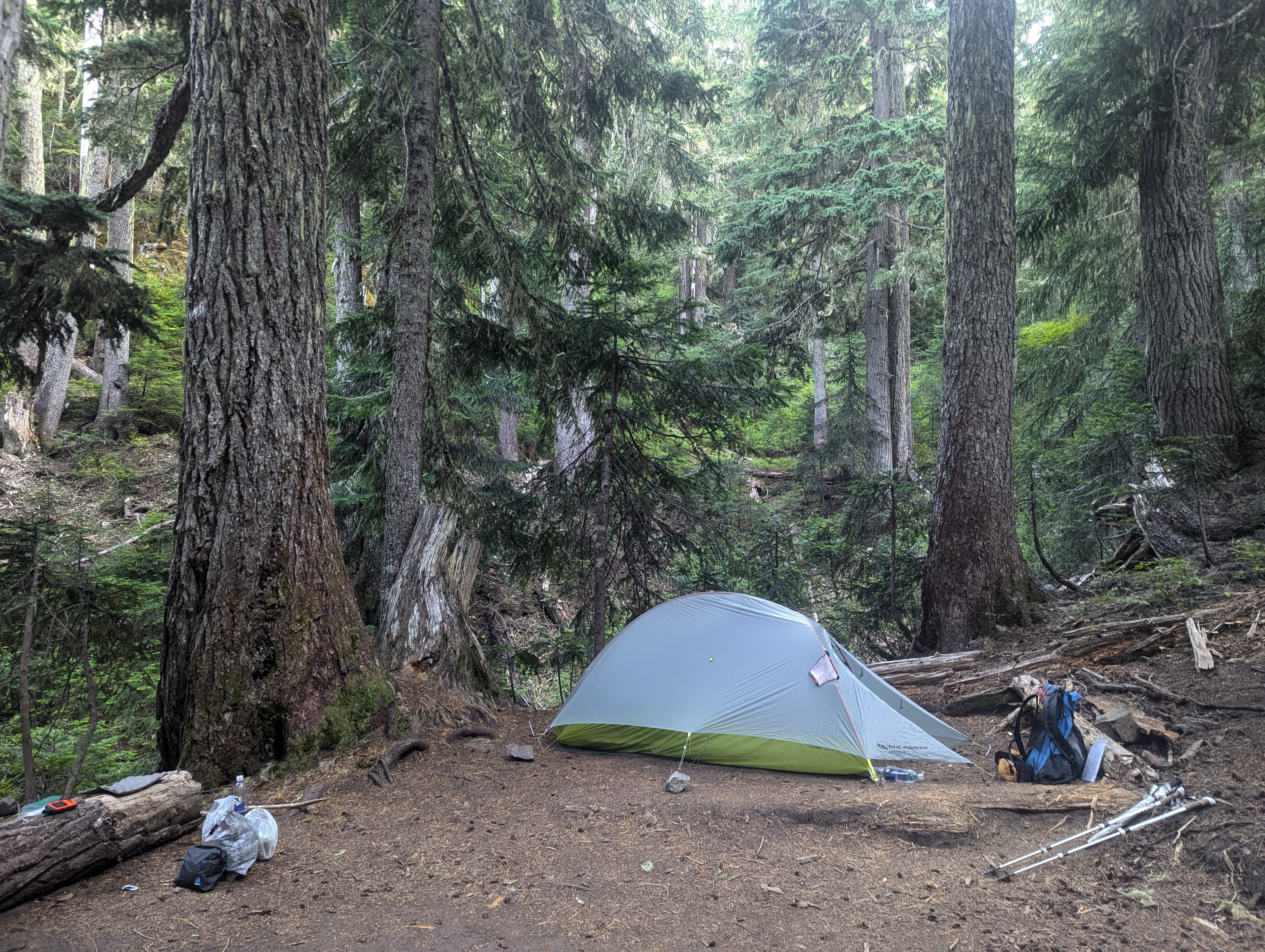 As my trip neared, I watched the permit numbers on recreation.gov closely. My planned CCW itinerary camps were all still listed as walk-up. I spent time familiarizing myself with maps, planning resupply and researching section hiking contingencies. On September 1st, just two days before my departure, I checked my camps again and now they were listed as zero. Well shit! I scrambled to see what campsites might be available since ones that were listed as walk-up now showed numbers of availability. 1 campsite available at Klapatche Park on September 5. I couldn’t link it to any other camps so I spent the $26 and booked it. A bit later, I found that Eagle’s Roost now had availability on September 6 so I spent $26 and booked it. The next day, Yellowstone Cliffs was available for September 7 so, $26 and booked. Later that evening, Nickel Creek became available for September 9, so $26 and booked. I started my drive north to Tahoma on September 3rd with the hopes of filling the September 8th hole in my itinerary the next morning as a walk-up. I arrived just before dusk at my campsite at Big Creek Campground. This campground is just a 20 minute drive from Longmire, has well-spaced campsites and cell service! During a fitful night of sleep, I realized that I should also try to get a walk-up permit for the night of September 4. If I can shorten my day to Klapatche Park that would be a good thing.